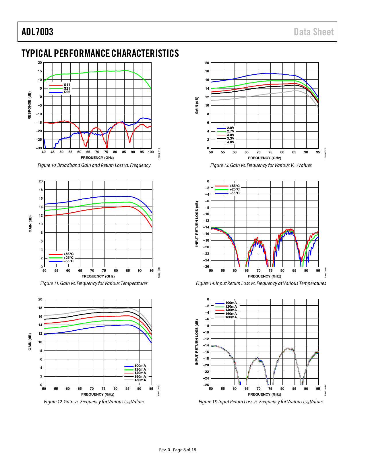 Pages / Page18 / 8 — ADL7003. Data Sheet. TYPICAL PERFORMANCE CHARACTERISTICS. S11. S21. S22. …