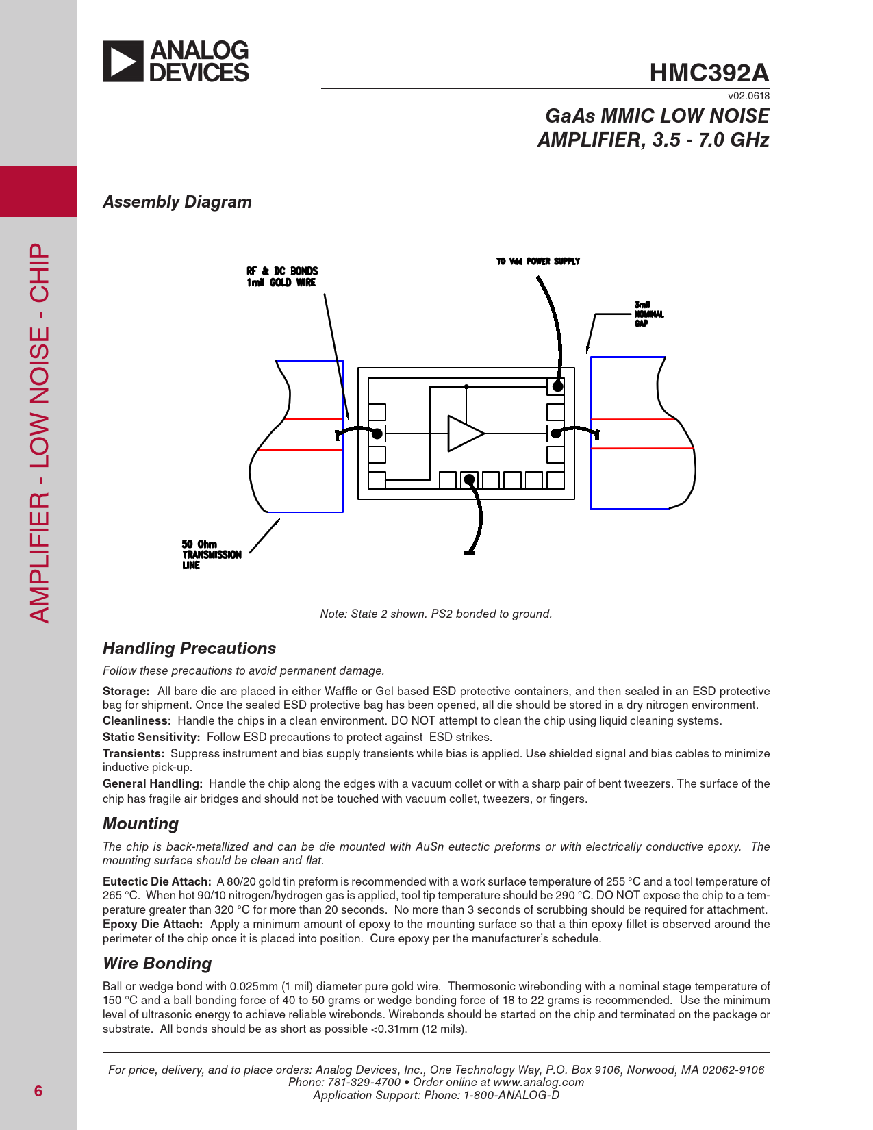HMC392A. GaAs MMIC LOW NOISE. AMPLIFIER, 3.5 - 7.0 GHz. Assembly Diagram. Handling Precautions. Storage:. Cleanliness: