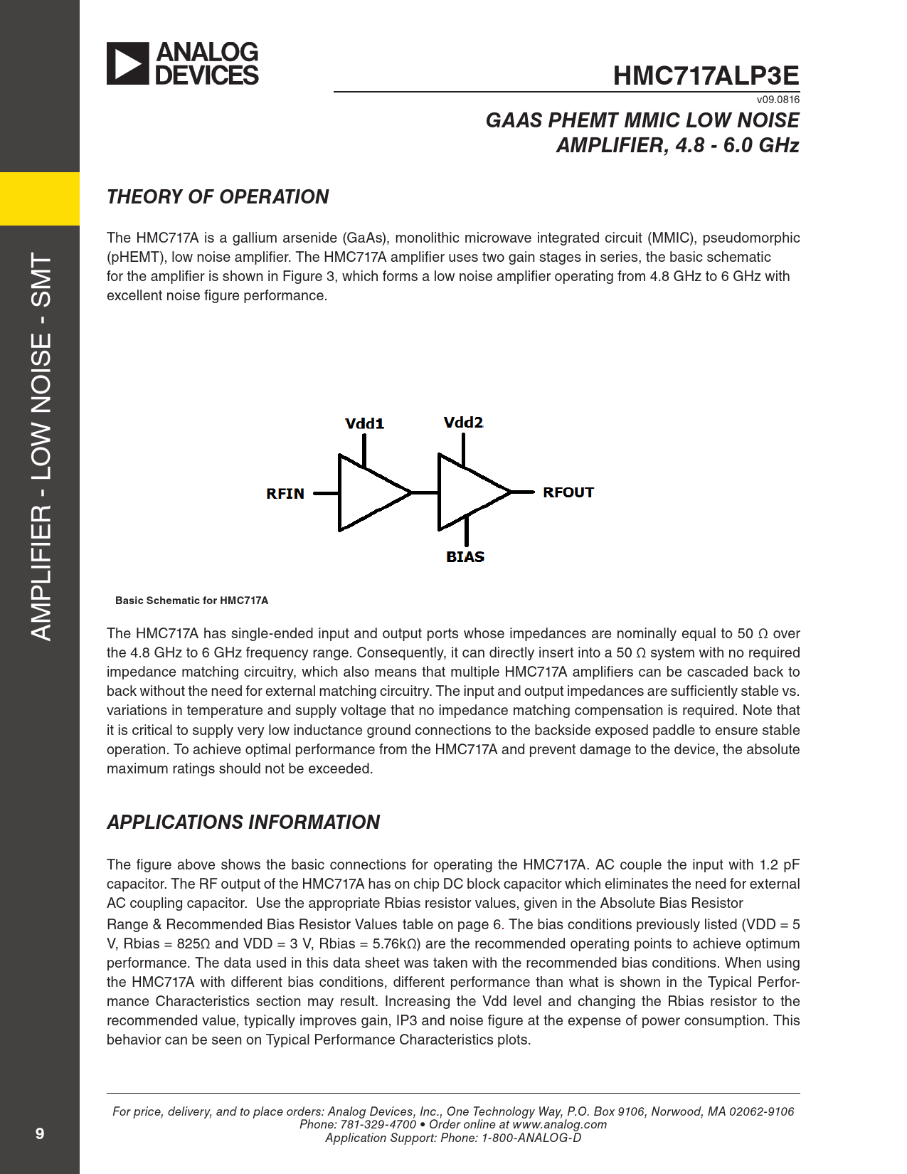 HMC717ALP3E. Gaas pHEMT MMIC LOW NOIsE. aMpLIFIER, 4.8 - 6.0 GHz. THEORY OF OpERaTION. Basic Schematic for HMC717A