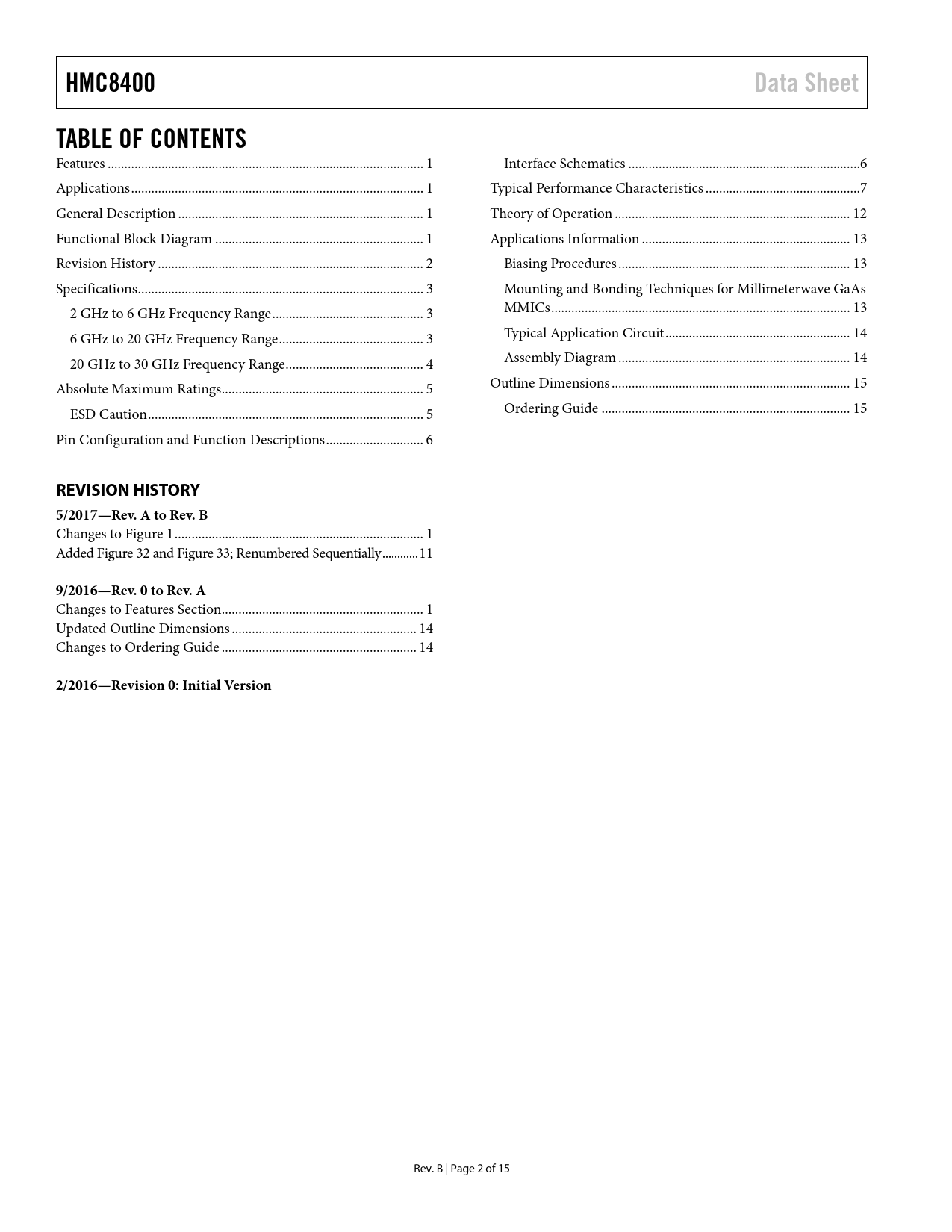 Pages / Page15 / 2 — HMC8400. Data Sheet. TABLE OF CONTENTS. REVISION HISTORY 5/2017—Rev. A to …