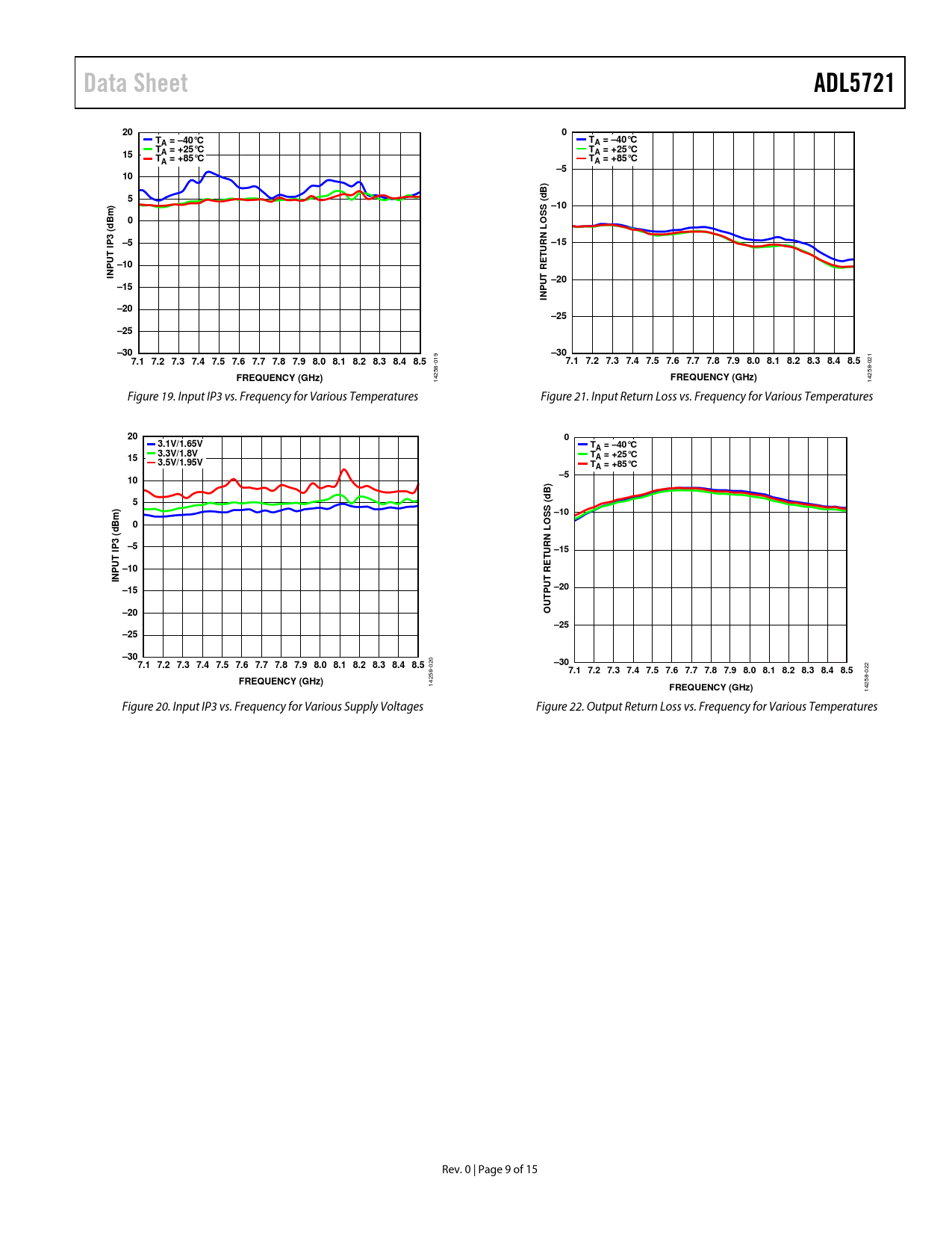 | Pages / Page | 15 / 9 — Data Sheet. ADL5721. TA = –40°C. A = +25°C. TA = +85°C. d ( S –10. Bm). d … |