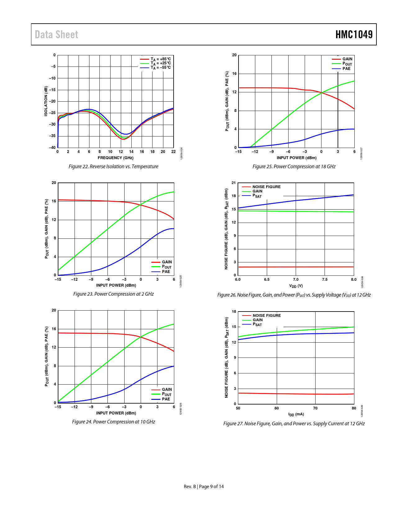 Data Sheet. HMC1049. TA = +85°C. GAIN. TA = +25°C. POUT. TA = –55°C. PAE. –10. ( AE. , P. –15. d N (. –20. TION. AI , G. OLA. –25. Bm) d (. –30. UT O. –35. –40. –12