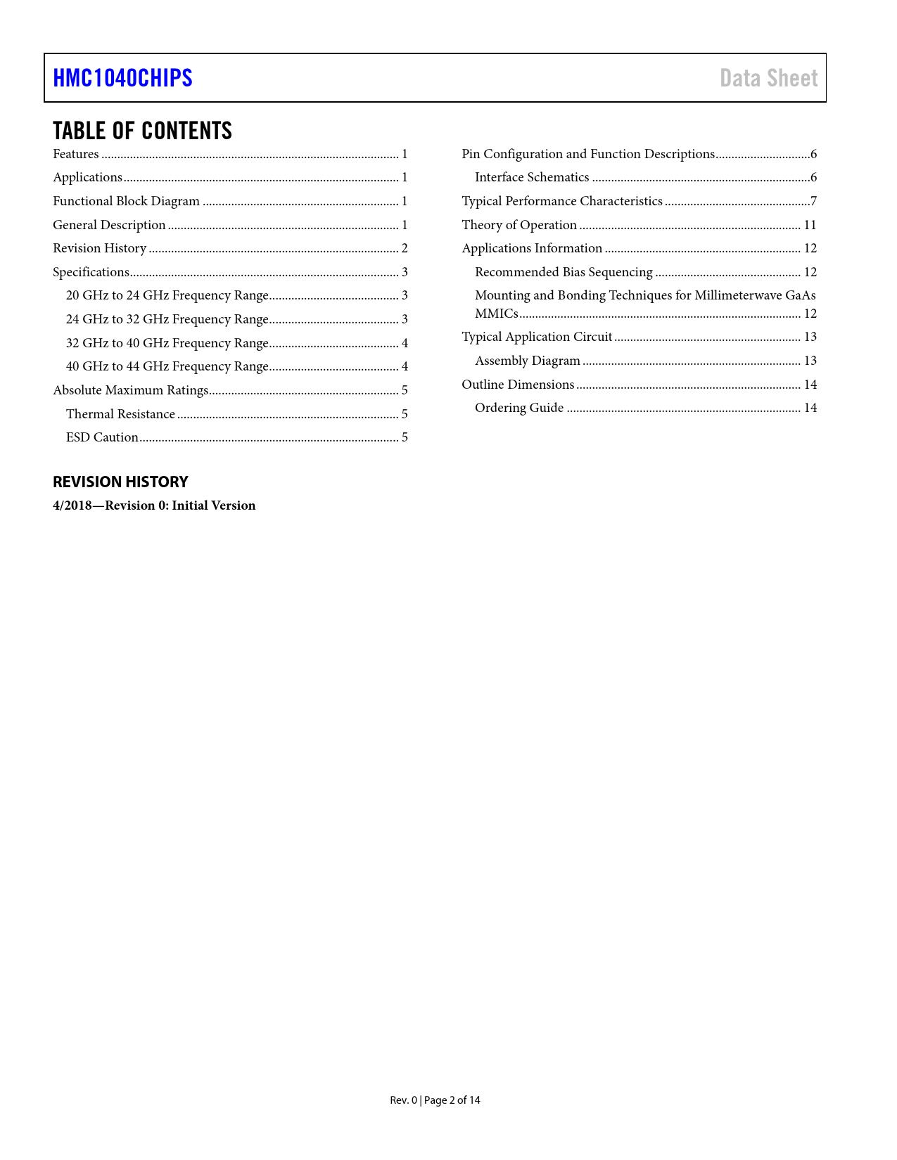 Pages / Page14 / 2 — HMC1040CHIPS. Data Sheet. TABLE OF CONTENTS. REVISION HISTORY …