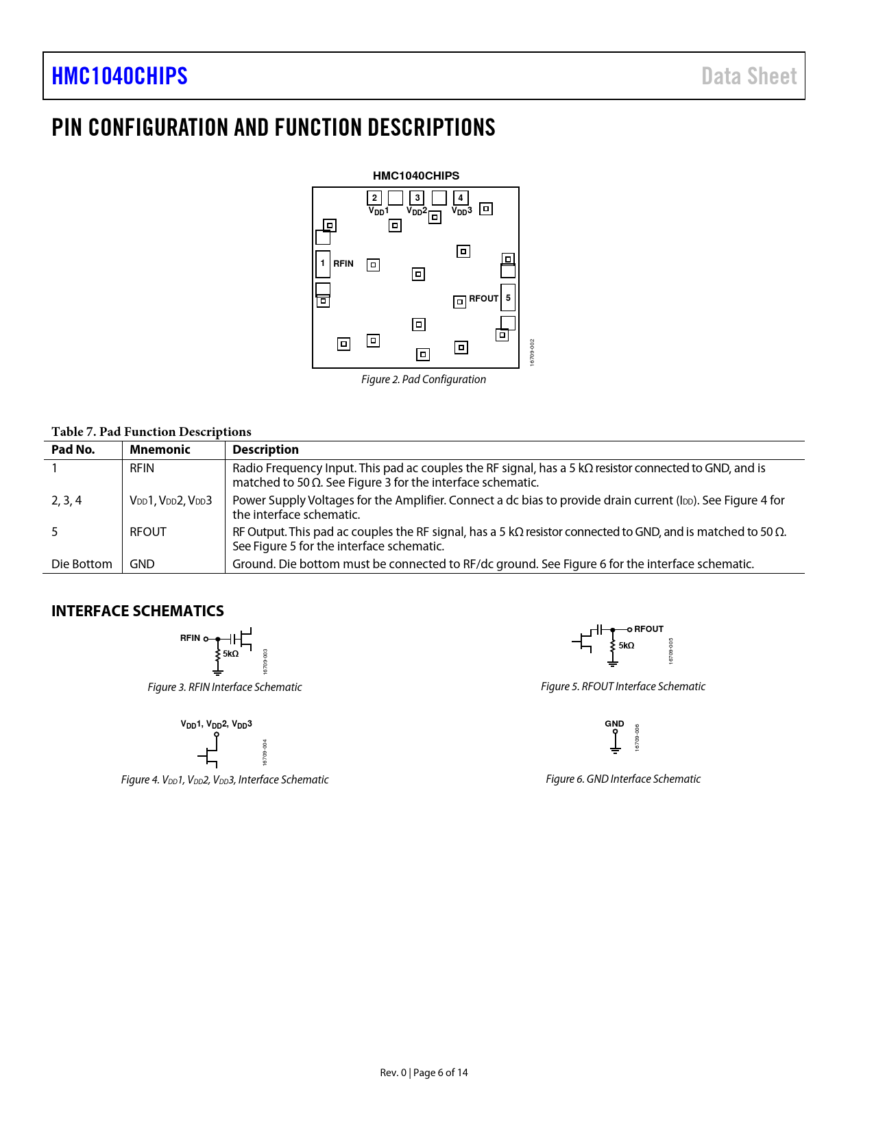 Pages / Page14 / 6 — HMC1040CHIPS. Data Sheet. PIN CONFIGURATION AND FUNCTION DESCRIPTIONS. …