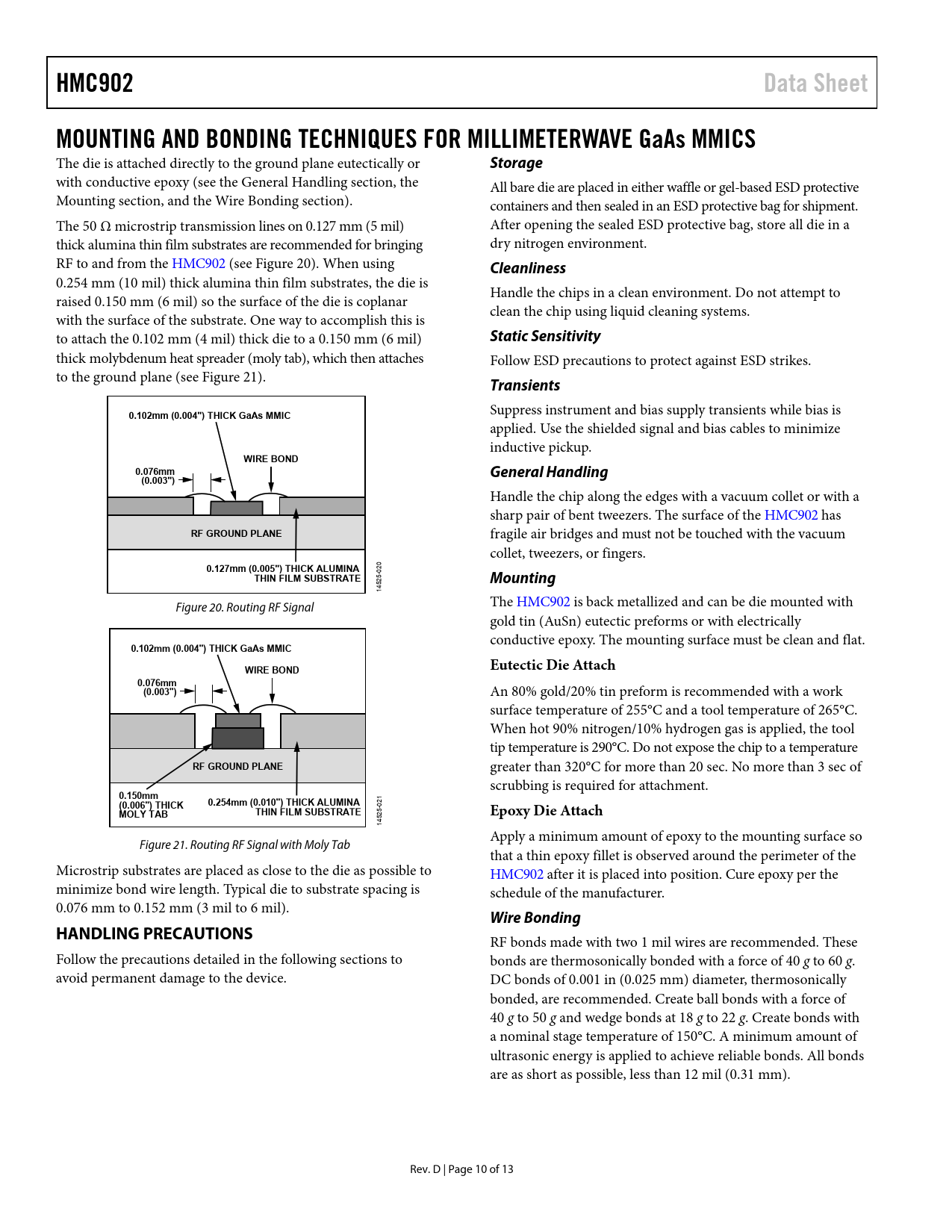 Pages / Page13 / 10 — HMC902. Data Sheet. MOUNTING AND BONDING TECHNIQUES FOR MILLIMETERWAVE …