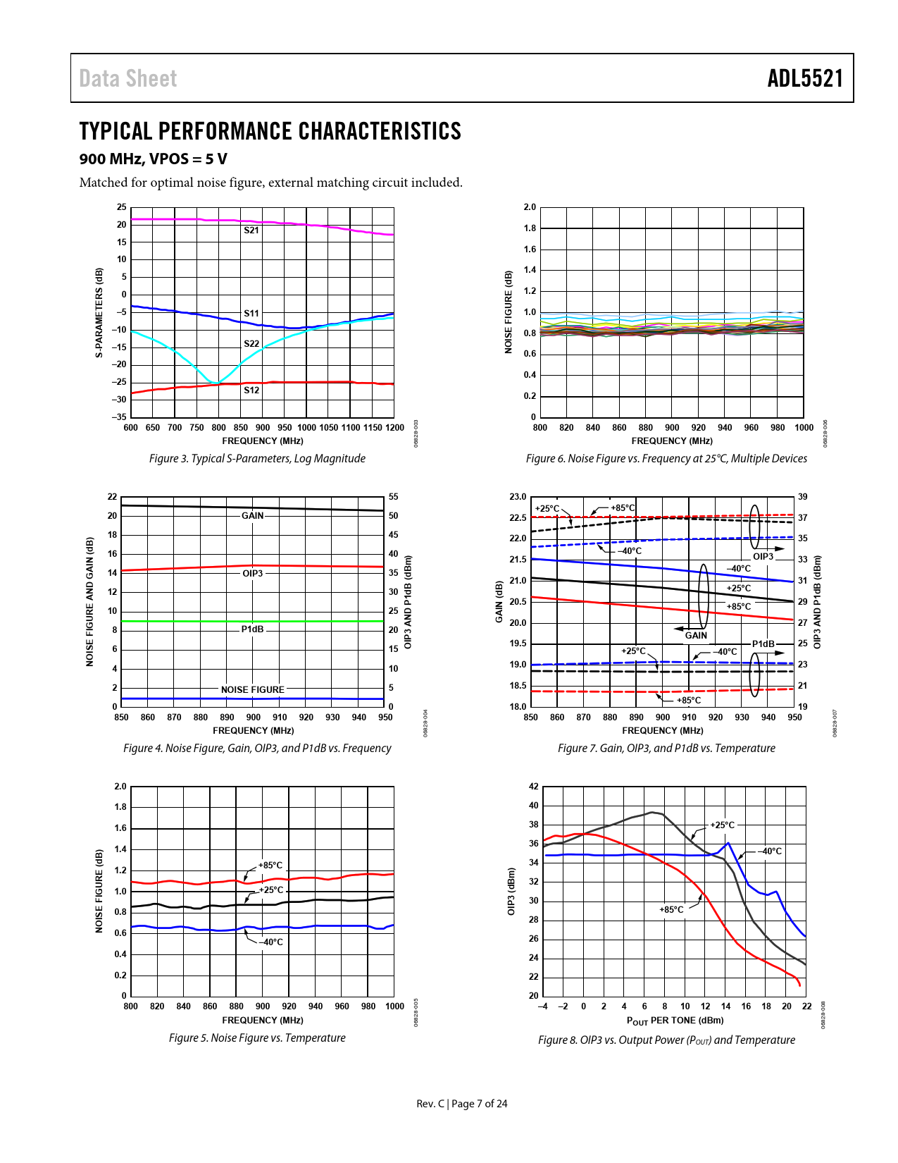 Pages / Page24 / 7 — Data Sheet. ADL5521. TYPICAL PERFORMANCE CHARACTERISTICS 900 MHz, VPOS = …