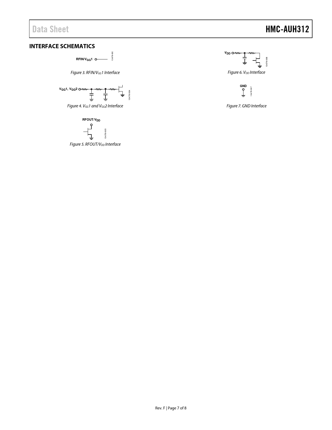 | Pages / Page | 17 / 7 — Data Sheet. HMC-AUH312. INTERFACE SCHEMATICS. VDD. RFIN/VGG1. GND. VGG1, … |