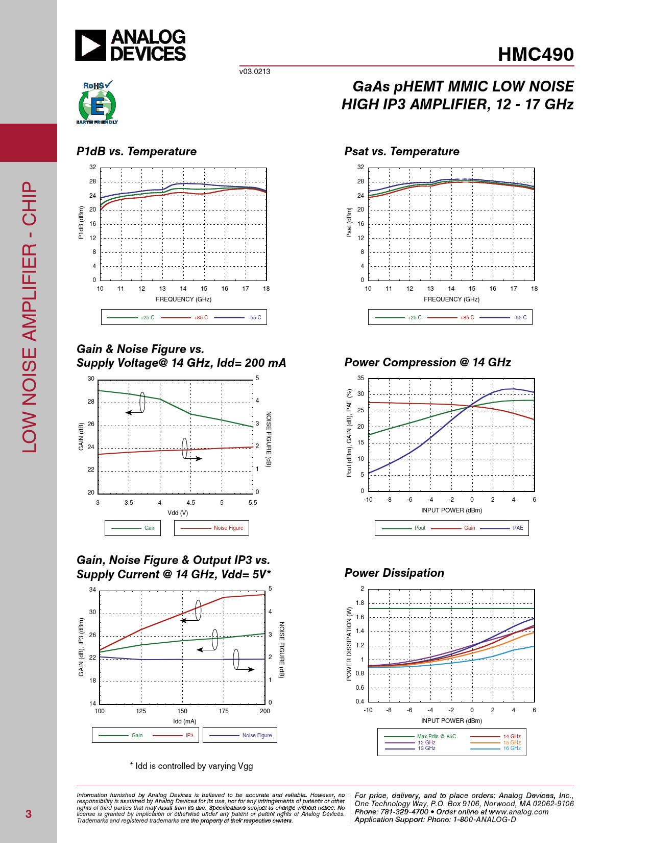 Pages / Page8 / 3 — HMC490. GaAs pHEMT MMIC LOW NOISE. HIGH IP3 AMPLIFIER, 12 - 17 GHz. P1dB …