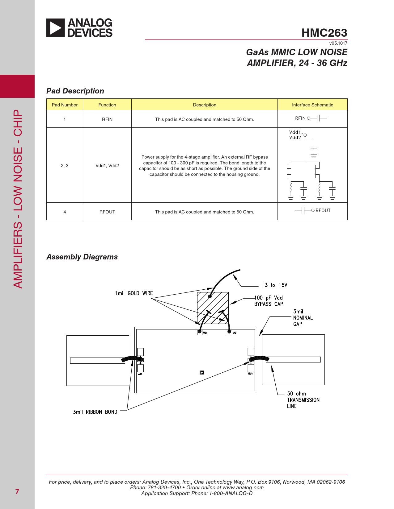 HMC263. GaAs MMIC LOW NOISE. AMPLIFIER, 24 - 36 GHz. Pad Description. Assembly Diagrams