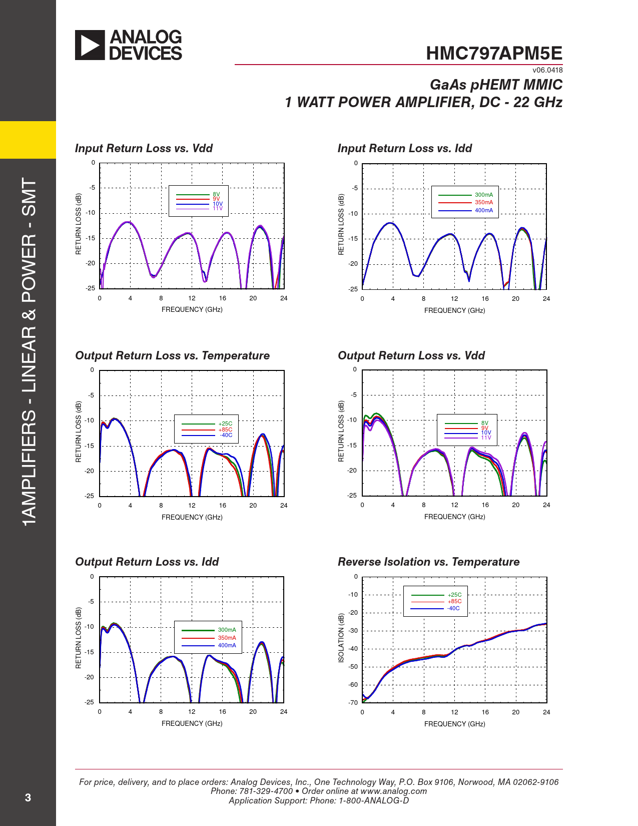 HMC797APM5E. GaAs pHEMT MMIC. 1 WATT POWER AMPLIFIER, DC - 22 GHz. Input Return Loss vs. Vdd. Input Return Loss vs. Idd