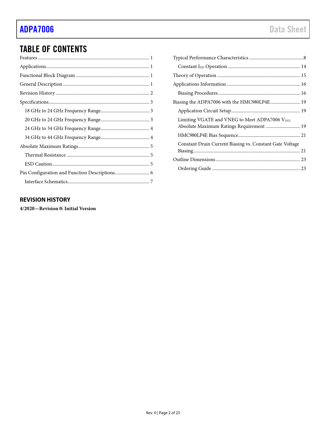 Pages / Page23 / 2 — ADPA7006. Data Sheet. TABLE OF CONTENTS. REVISION HISTORY. …