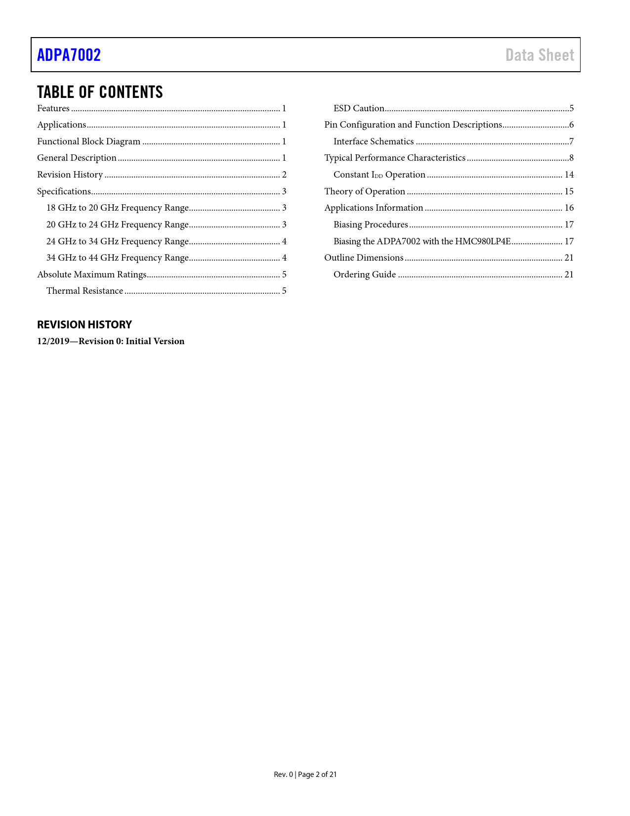 Pages / Page21 / 2 — ADPA7002. Data Sheet. TABLE OF CONTENTS. REVISION HISTORY …