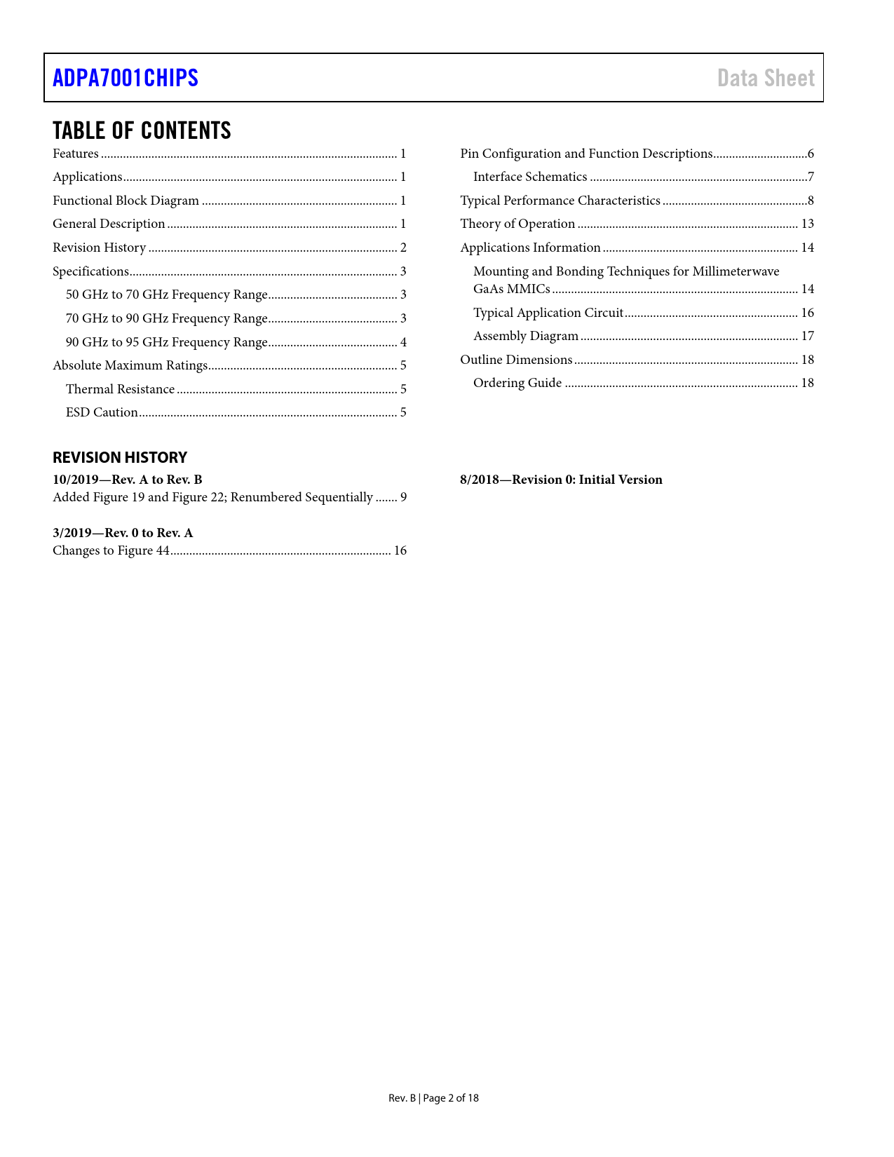 Pages / Page18 / 2 — ADPA7001CHIPS. Data Sheet. TABLE OF CONTENTS. REVISION HISTORY. …