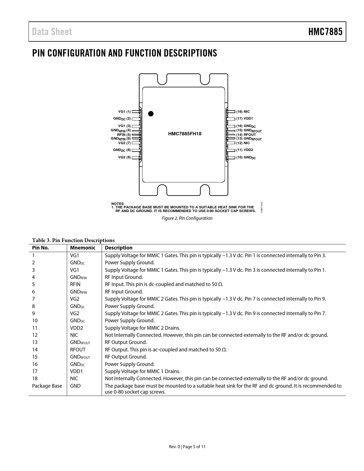 Pages / Page11 / 5 — Data Sheet. HMC7885. PIN CONFIGURATION AND FUNCTION DESCRIPTIONS. VG1 …