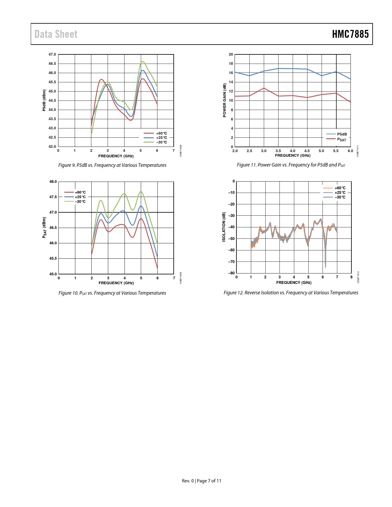 Data Sheet. HMC7885. 47.0. 46.5. 46.0. 45.5. B) d. 45.0. N (. Bm) d. 44.5. B (. R G. P 44.0. O P. 43.5. 43.0. +60°C. P5dB. 42.5. +25°C. PSAT. –30°C. 42.0. 2.0. 2.5. 3.0. 3.5