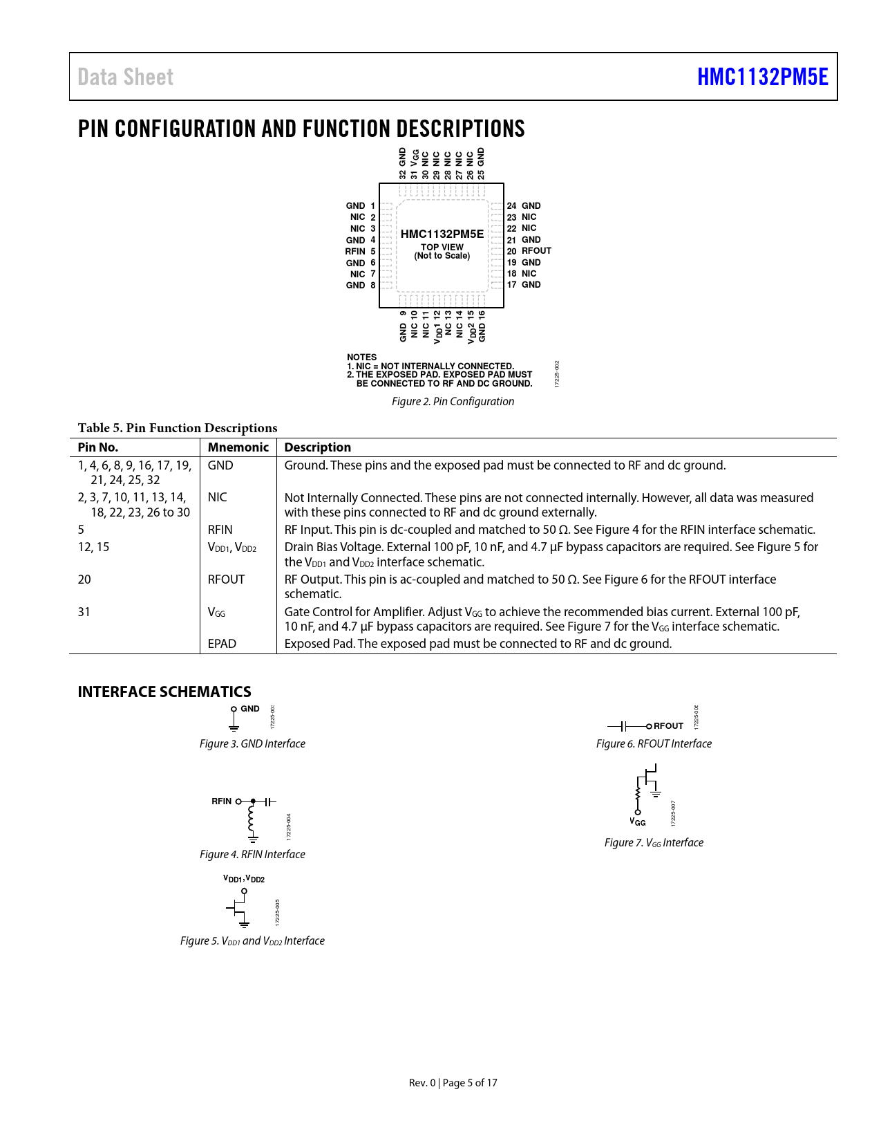 Pages / Page17 / 5 — Data Sheet. HMC1132PM5E. PIN CONFIGURATION AND FUNCTION DESCRIPTIONS. GND …