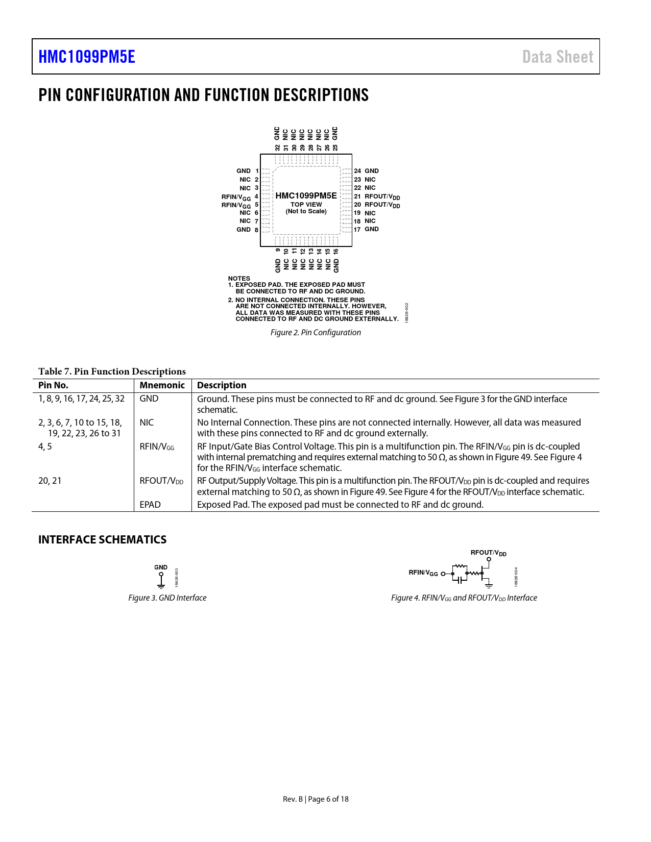 Pages / Page18 / 6 — HMC1099PM5E. Data Sheet. PIN CONFIGURATION AND FUNCTION DESCRIPTIONS. GND …