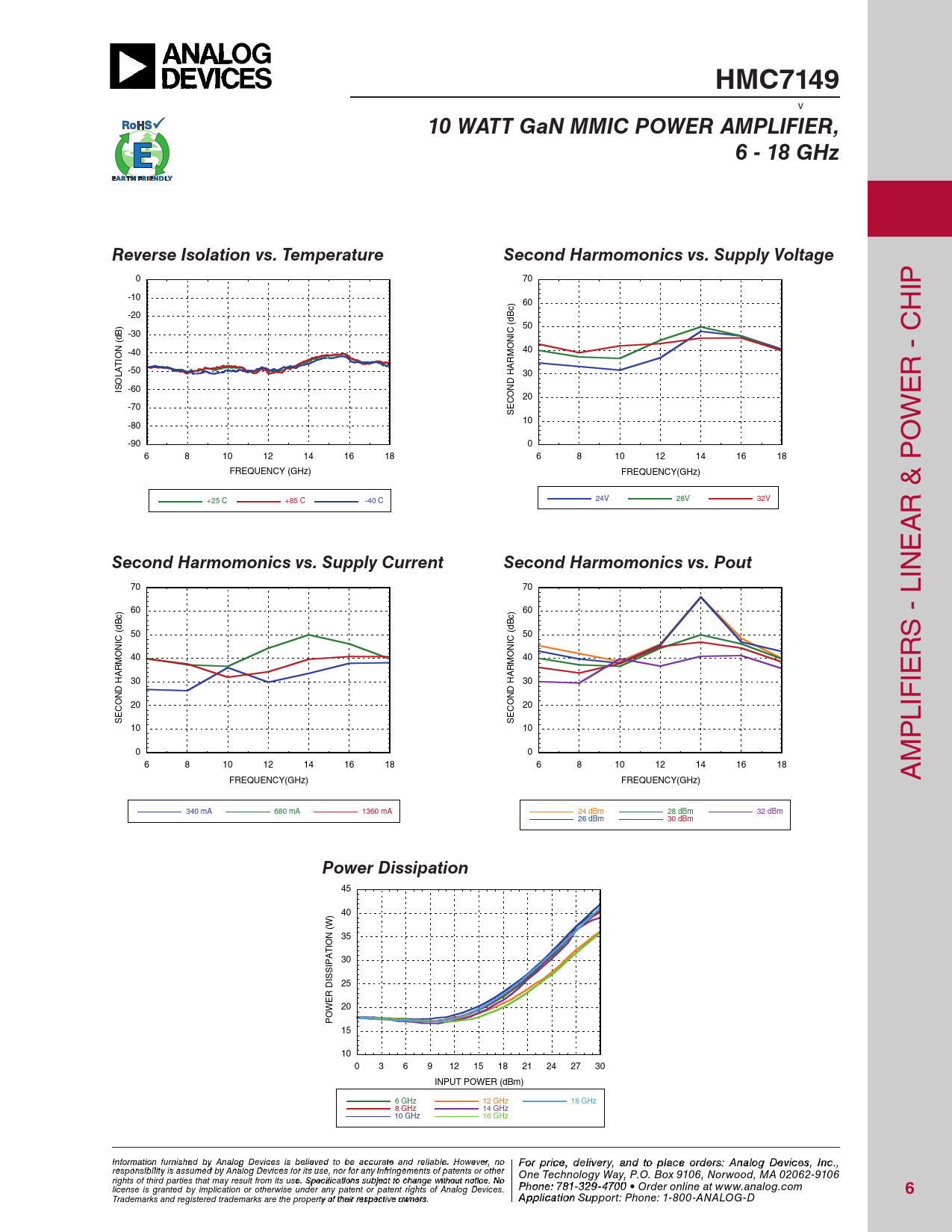 45 40 (W) 35 30 DISSIPATION 25 20 POWER 15 10 0 3 6 9 12 15 18 21 24 27 30 INPUT POWER (dBm) 6 GHz 12 GHz 18 GHz 8 GHz 14 GHz 10 GHz 16 GHz FIo nf r p orm raiticoe n , d fur e nislihvee d rby a y A n n d t alog o p Devila ce cs e o is b rd eli e ev res d : A to n b a e lao ccg D urat e e v anic d eresli, I abl n e c . .H, 1 Technology Way, P.O. Box 9106, Norwood, MA 02062-9106 owever, no For price, delivery, and to place orders: Analog Devices, In c., responsibility is assumed by Analog Devices for its use, nor for any infringements of patents or other Phone: 781-329-4700 • Order On-line at www.analog.com One Technology Way, P.O. Box 9106, Norwood, MA 02062-9106 rights of third parties that may result from its use. Specifications subject to change without notice. No license is granted by implication or otherwise under any patent or patent rights of Analog Devices. Phone: 781-329-4700 • Order online at www.analog.com
