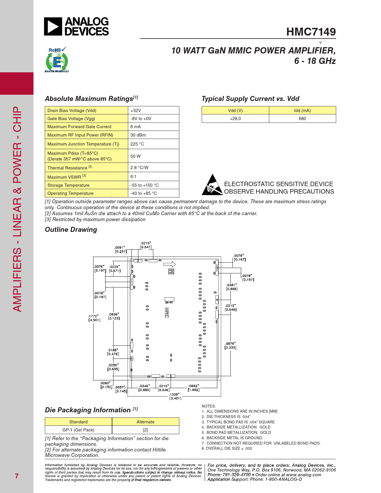 Pages / Page10 / 7 — HMC7149. 10 WATT GaN MMIC POWER AMPLIFIER,. 6 - 18 GHz. Absolute Maximum …