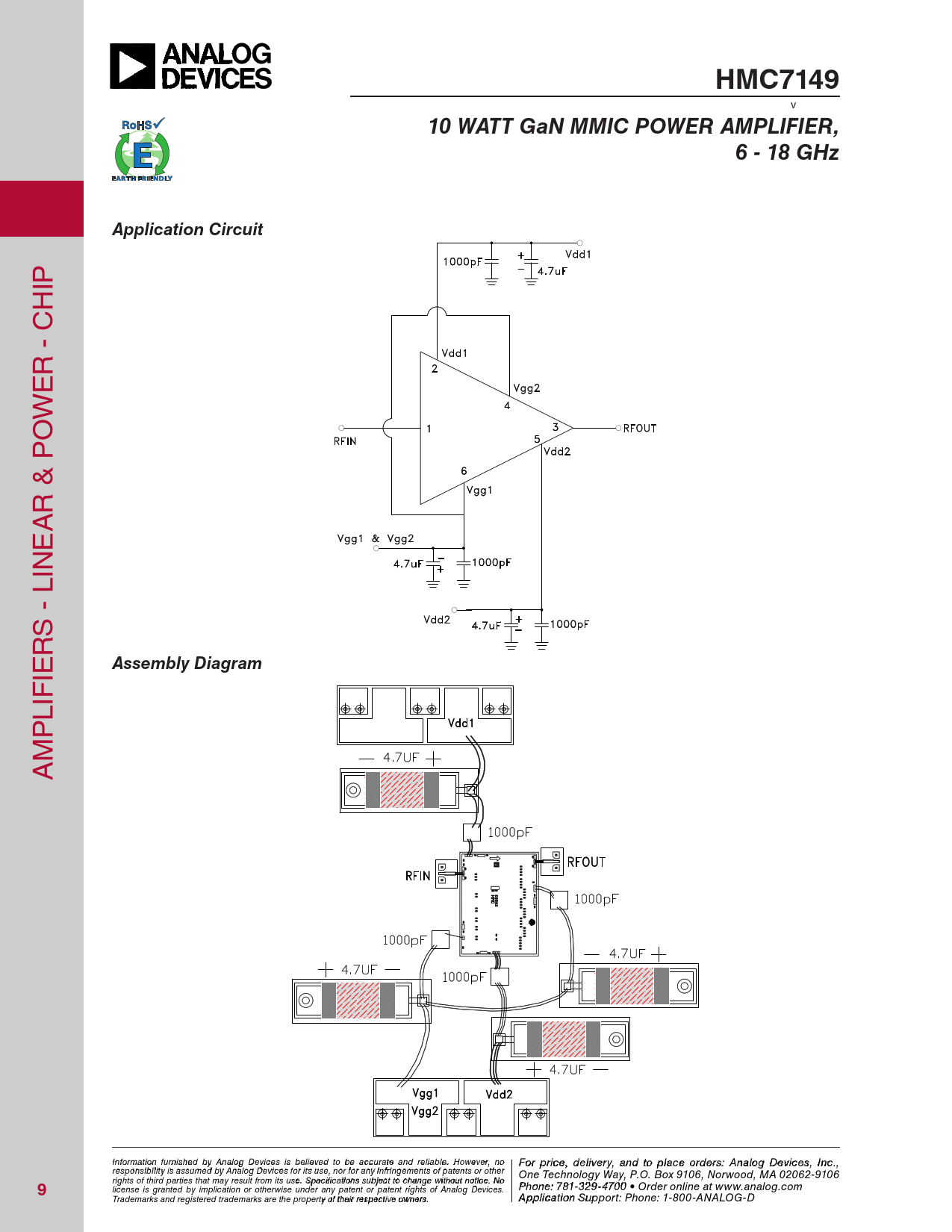 HMC7149 v 10 WATT GaN MMIC POWER AMPLIFIER,6 - 18 GHzApplication Circuit IP H R - C E W O R & P A E IN S - L R IE Assembly Diagram LIF P M A FIo nf r p orm raiticoe n , d fur e nislihvee d rby a y A n n d t alog o p Devila ce cs e o is b rd eli e ev res d : A to n b a e lao ccg D urat e e v anic d eresli, I abl n e c . .H, 1 Technology Way, P.O. Box 9106, Norwood, MA 02062-9106 owever, no For price, delivery, and to place orders: Analog Devices, In c., responsibility is assumed by Analog Devices for its use, nor for any infringements of patents or other One Technology Way, P.O. Box 9106, Norwood, MA 02062-9106 9 Phone: 781-329-4700 • Order On-line at www.analog.com rights of third parties that may result from its use. Specifications subject to change without notice. No license is granted by implication or otherwise under any patent or patent rights of Analog Devices. Phone: 781-329-4700 • Order online at www.analog.com Application Support: Phone: 1-800-ANALOG-D Trademarks and registered trademarks are the property of their respective owners. Application Support: Phone: 1-800-ANALOG-D
