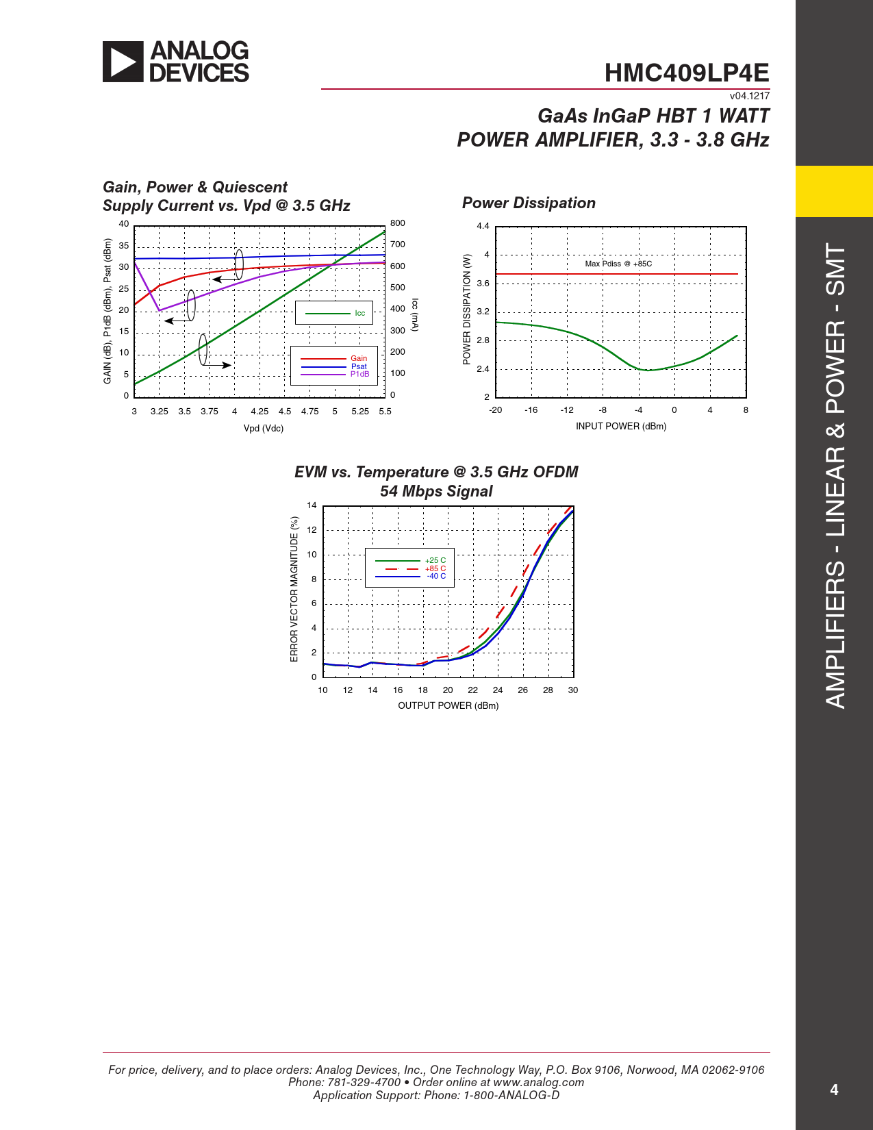 HMC409LP4E. GaAs InGaP HBT 1 WATT. POWER AMPLIFIER, 3.3 - 3.8 GHz