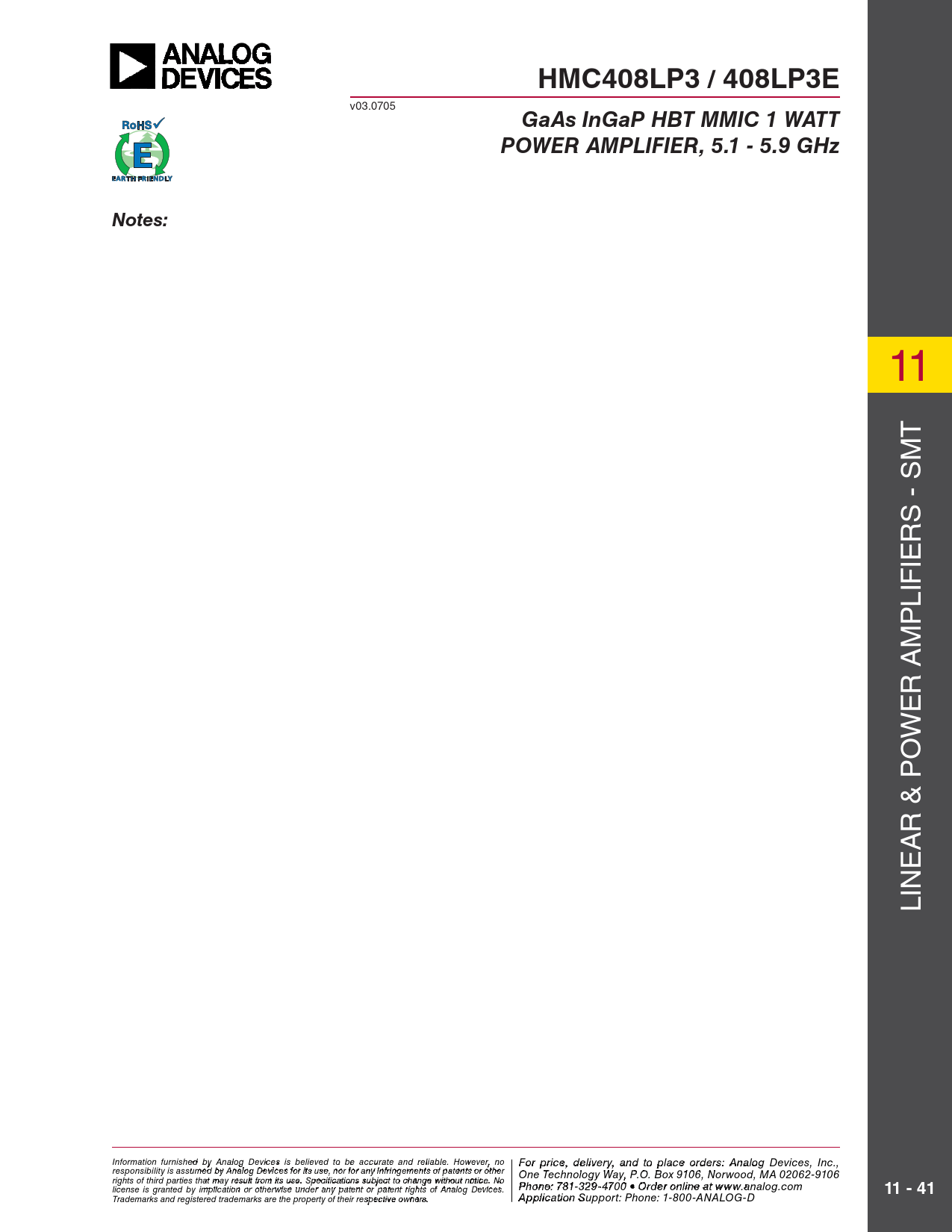 HMC408LP3 / 408LP3E. GaAs InGaP HBT MMIC 1 WATT. POWER AMPLIFIER, 5.1 - 5.9 GHz. Notes:. 11 - 41