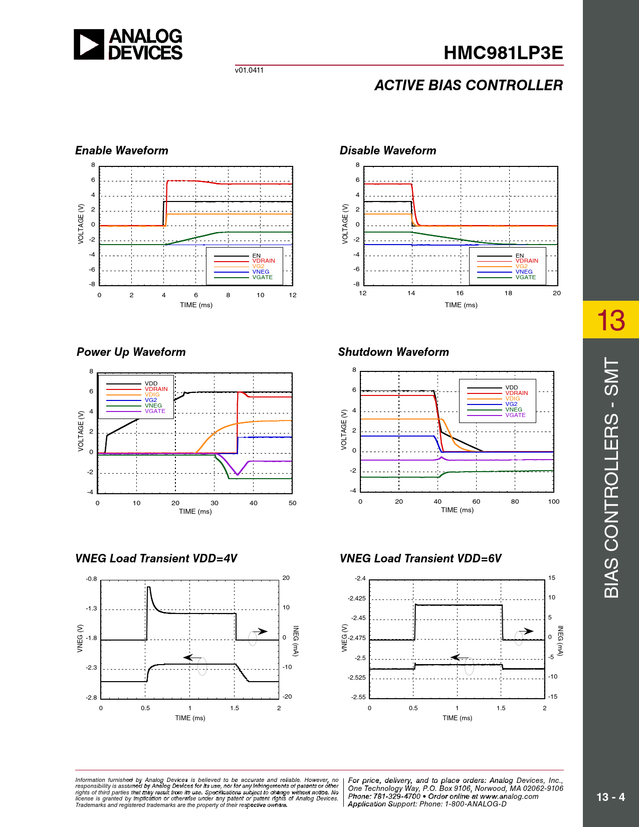 HMC981LP3E. ACTIVE BIAS CONTROLLER. Enable Waveform. Disable Waveform. Power Up Waveform. Shutdown Waveform