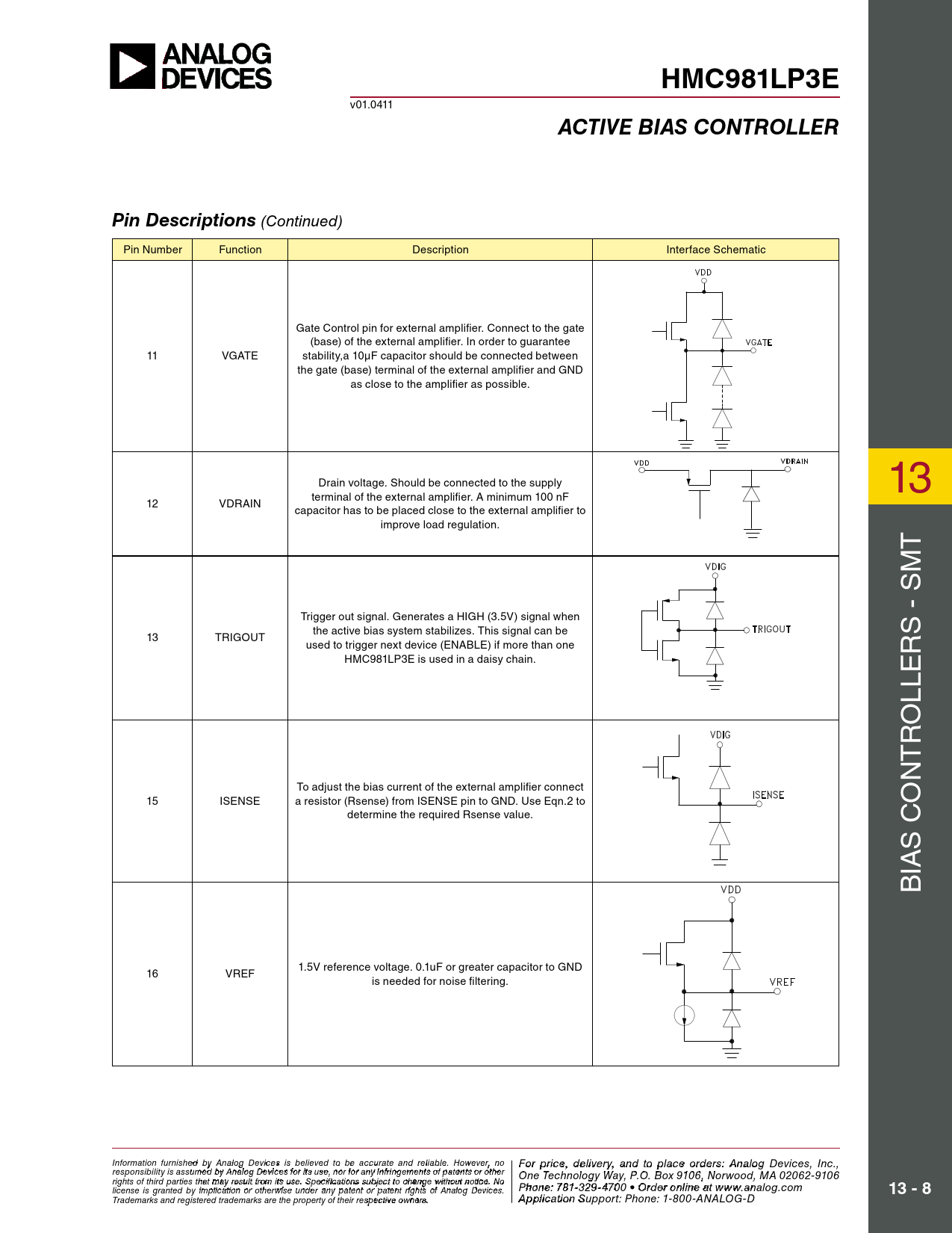 HMC981LP3E. ACTIVE BIAS CONTROLLER. Pin Descriptions. 13 - 8