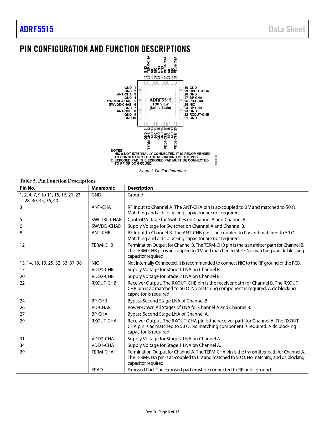 Pages / Page15 / 6 — ADRF5515. Data Sheet. PIN CONFIGURATION AND FUNCTION DESCRIPTIONS. -CHA. …