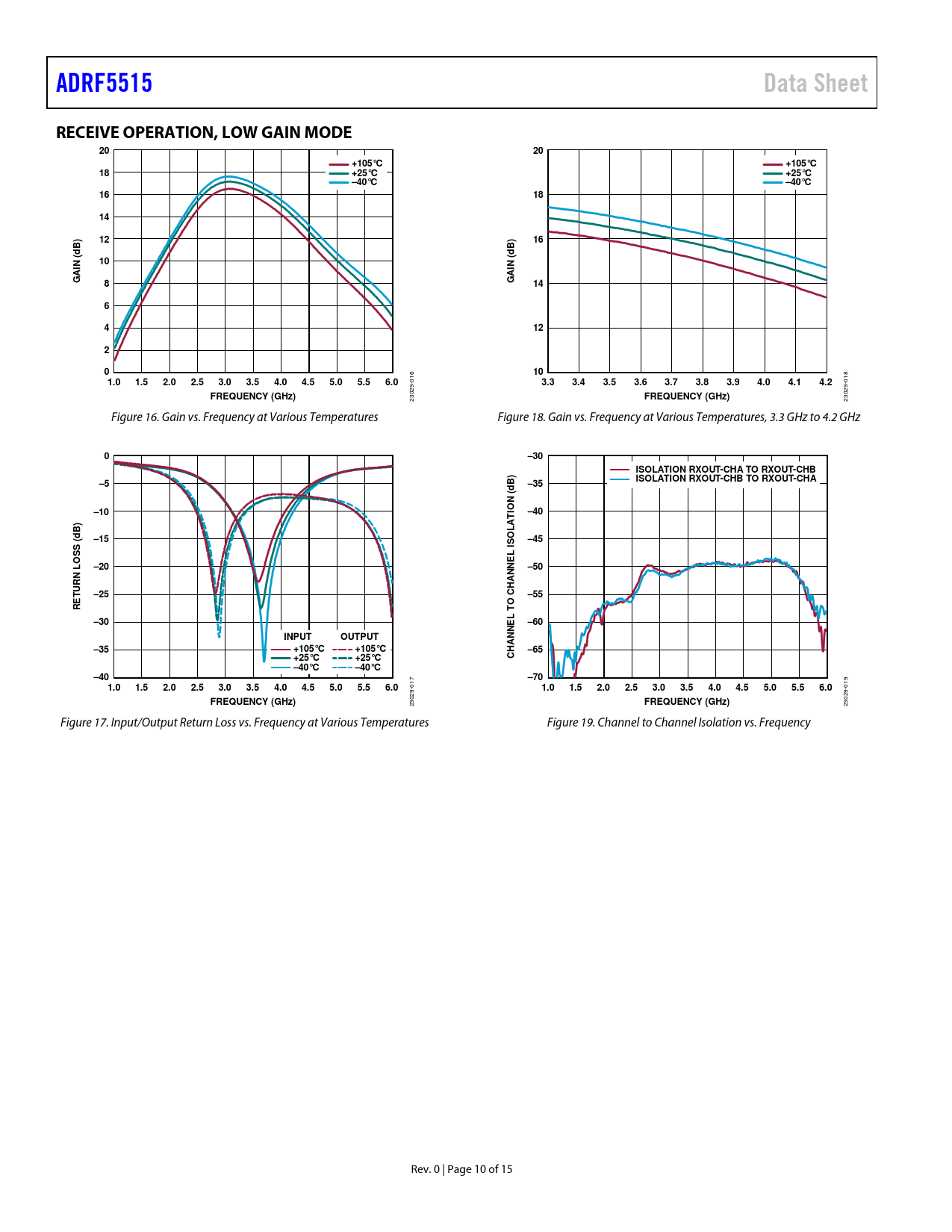 Pages / Page15 / 10 — ADRF5515. Data Sheet. RECEIVE OPERATION, LOW GAIN MODE. +105°C. +25°C. …