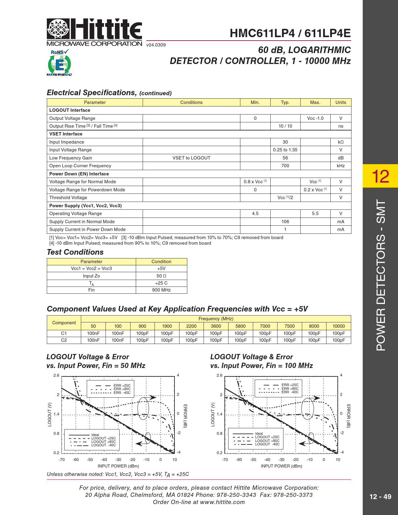 Pages / Page12 / 4 — HMC611LP4 / 611LP4E. 60 dB, LOGARITHMIC. DETECTOR / CONTROLLER, 1 - 10000 …