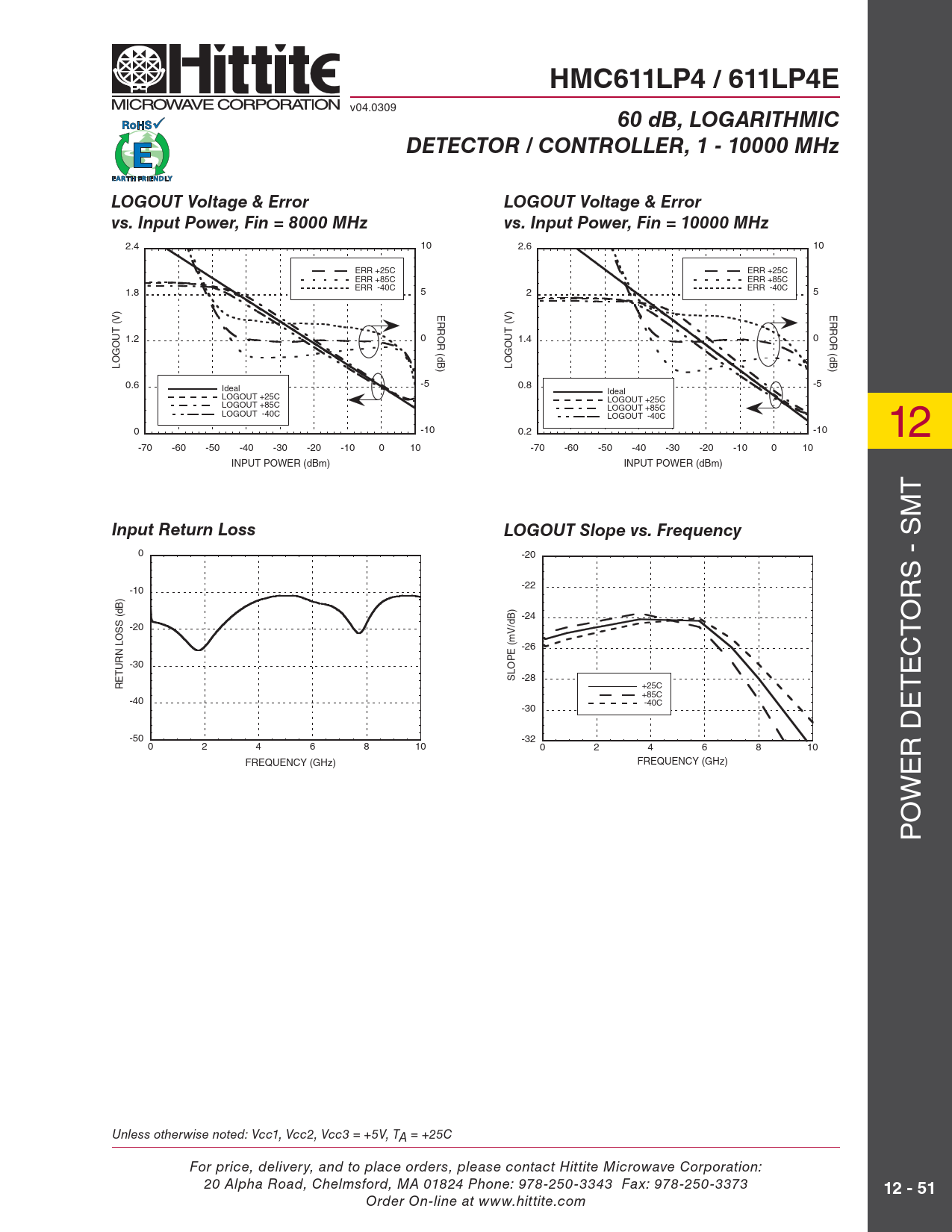 HMC611LP4 / 611LP4E. 60 dB, LOGARITHMIC. DETECTOR / CONTROLLER, 1 - 10000 MHz. LOGOUT Voltage & Error
