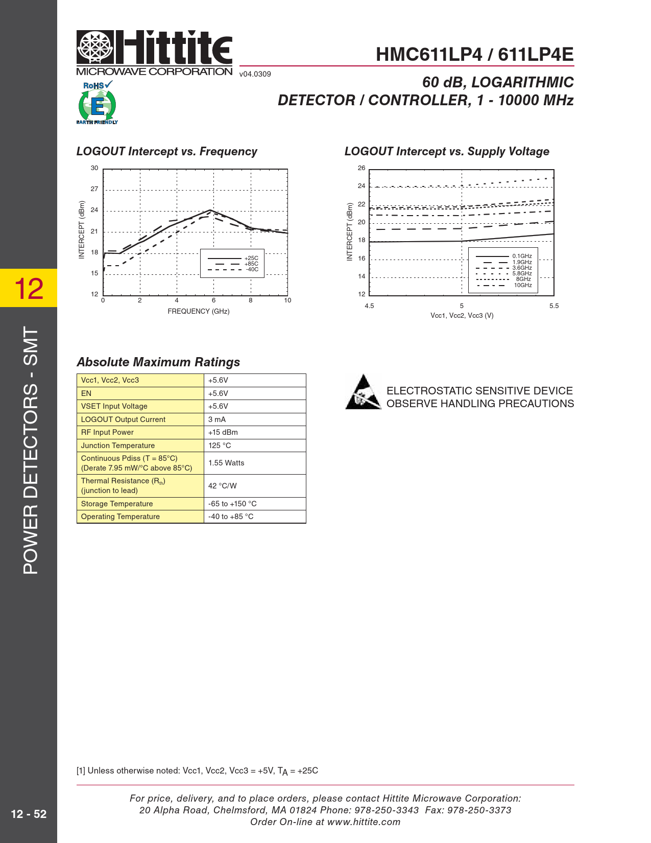 Pages / Page12 / 7 — HMC611LP4 / 611LP4E. 60 dB, LOGARITHMIC. DETECTOR / CONTROLLER, 1 - 10000 …
