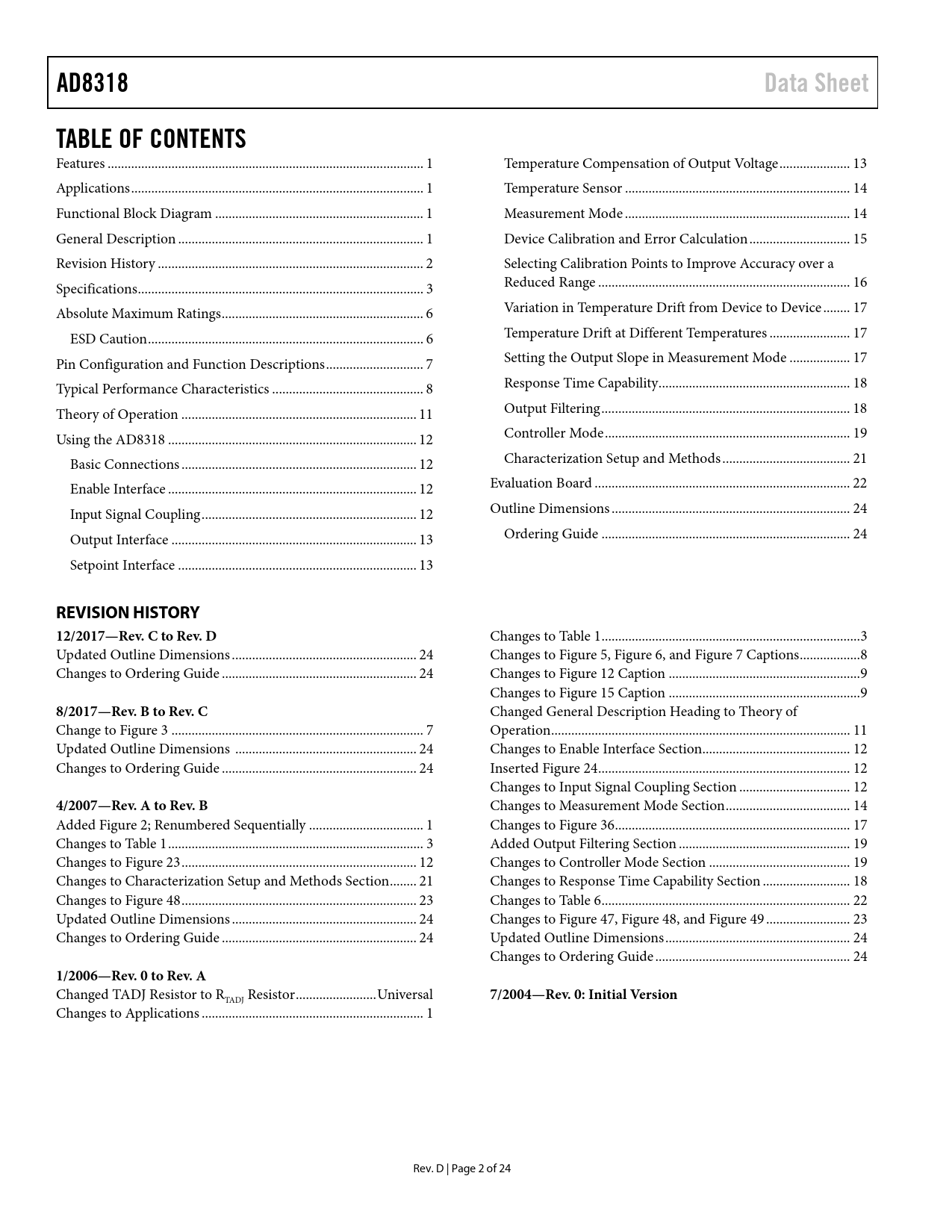 Pages / Page24 / 2 — AD8318. Data Sheet. TABLE OF CONTENTS. REVISION HISTORY 12/2017—Rev. C to …