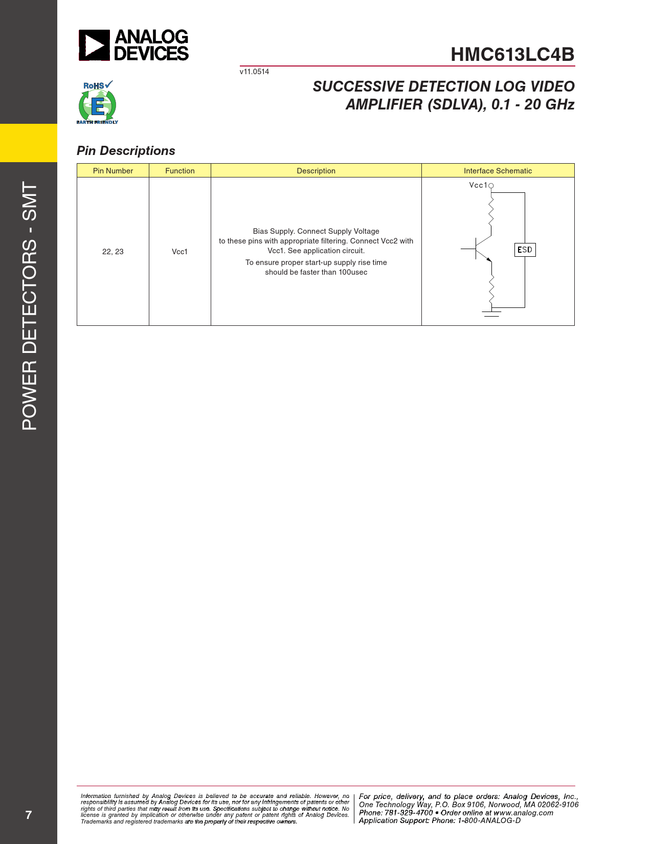 HMC613LC4B. SUCCESSIVE DETECTION LOG VIDEO. AMPLIFIER (SDLVA), 0.1 - 20 GHz. Pin Descriptions