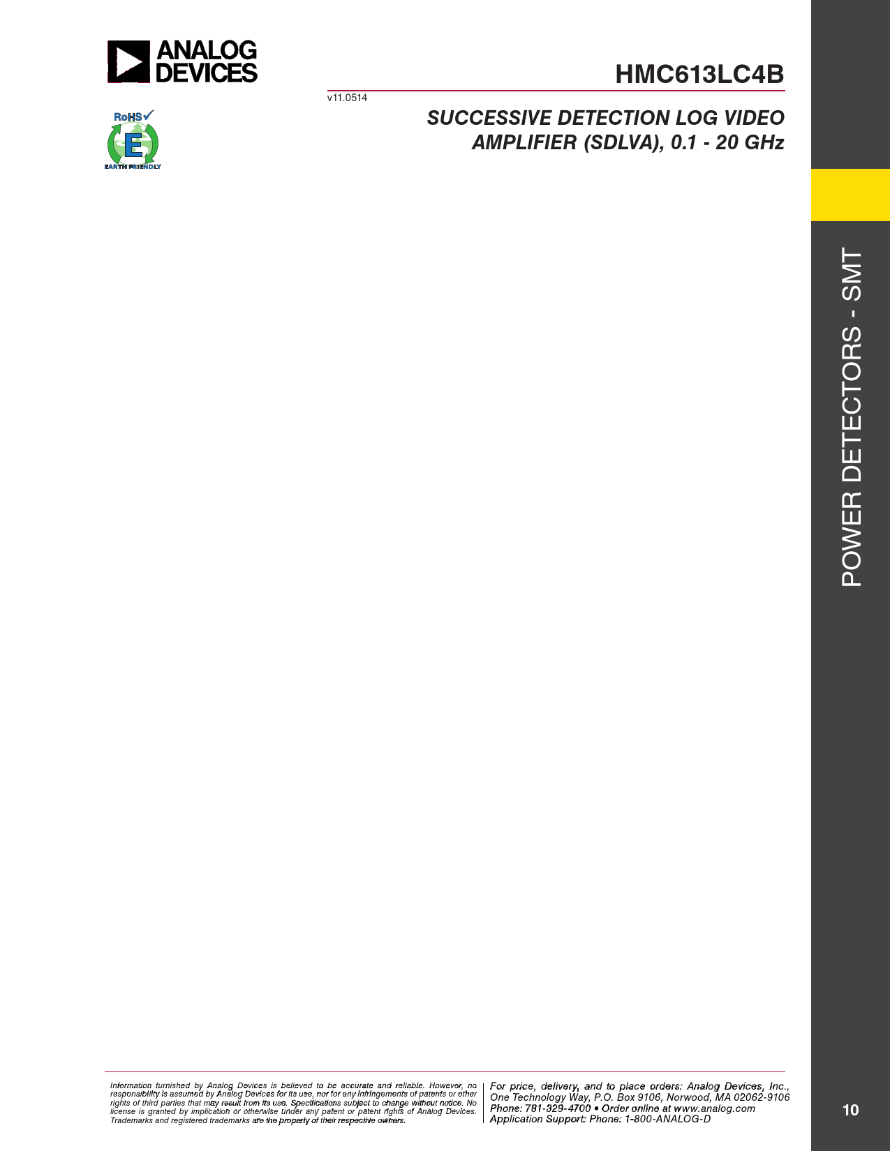 Pages / Page10 / 10 — HMC613LC4B. SUCCESSIVE DETECTION LOG VIDEO. AMPLIFIER (SDLVA), 0.1 - 20 …