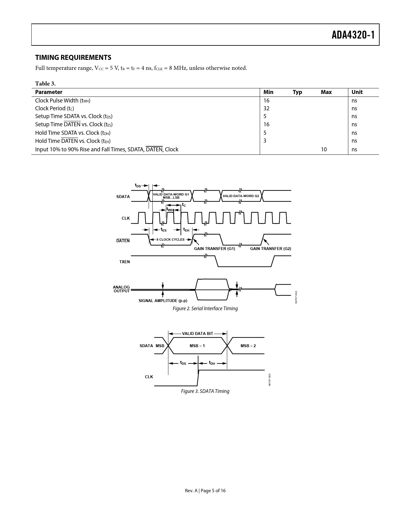 Pages / Page16 / 5 — TIMING REQUIREMENTS. Table 3. Parameter. Min. Typ. Max. Unit. tDS. VALID …
