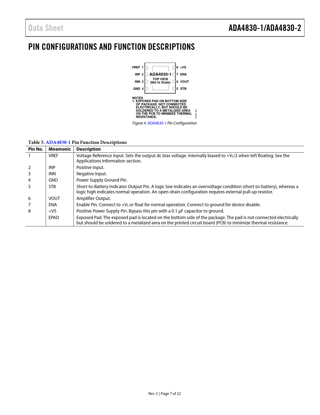 Pages / Page22 / 7 — Data Sheet. ADA4830-1/ADA4830-2. PIN CONFIGURATIONS AND FUNCTION …