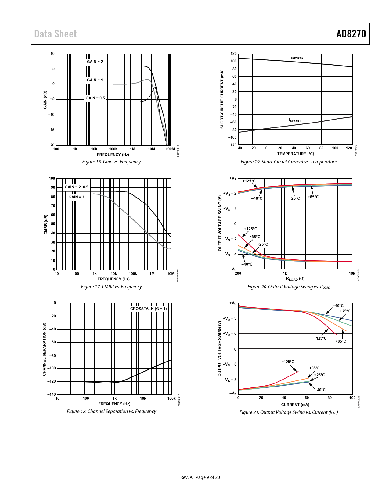 20 /9 — Data Sheet. AD8270. 120. ISHORT+. GAIN = 2. 100. A) m. GAIN = 1. RRE. d ( …