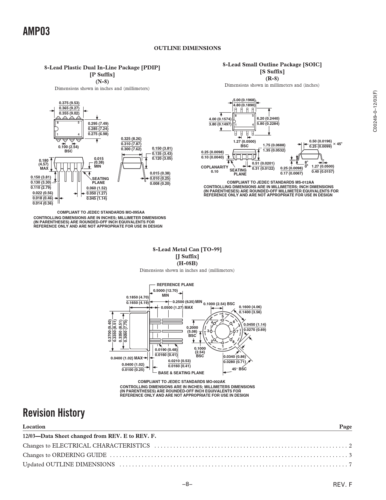 AMP03. OUTLINE DIMENSIONS. 8-Lead Small Outline Package [SOIC]. 8-Lead Plastic Dual In-Line Package [PDIP]. [S Suffix]