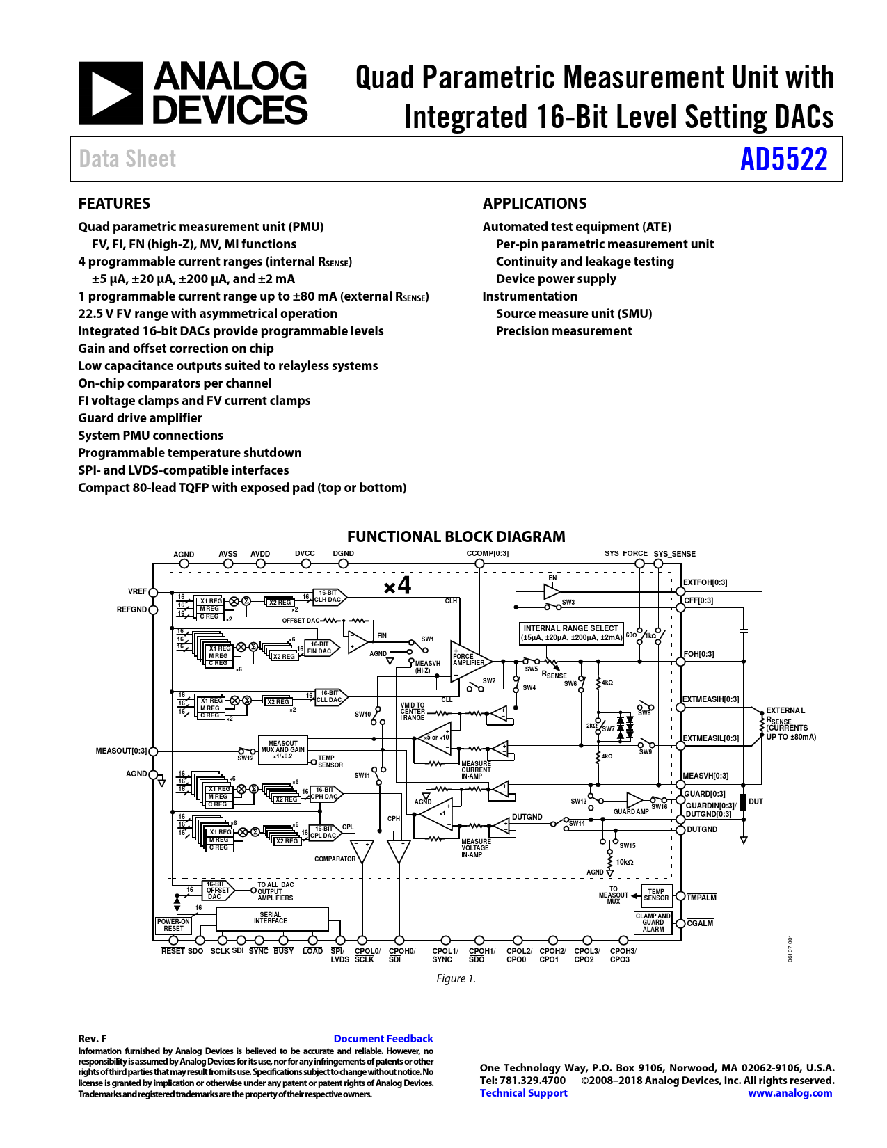 Quad Parametric Measurement Unit with. Integrated 16-Bit Level Setting DACs. Data Sheet. AD5522. FEATURES. APPLICATIONS