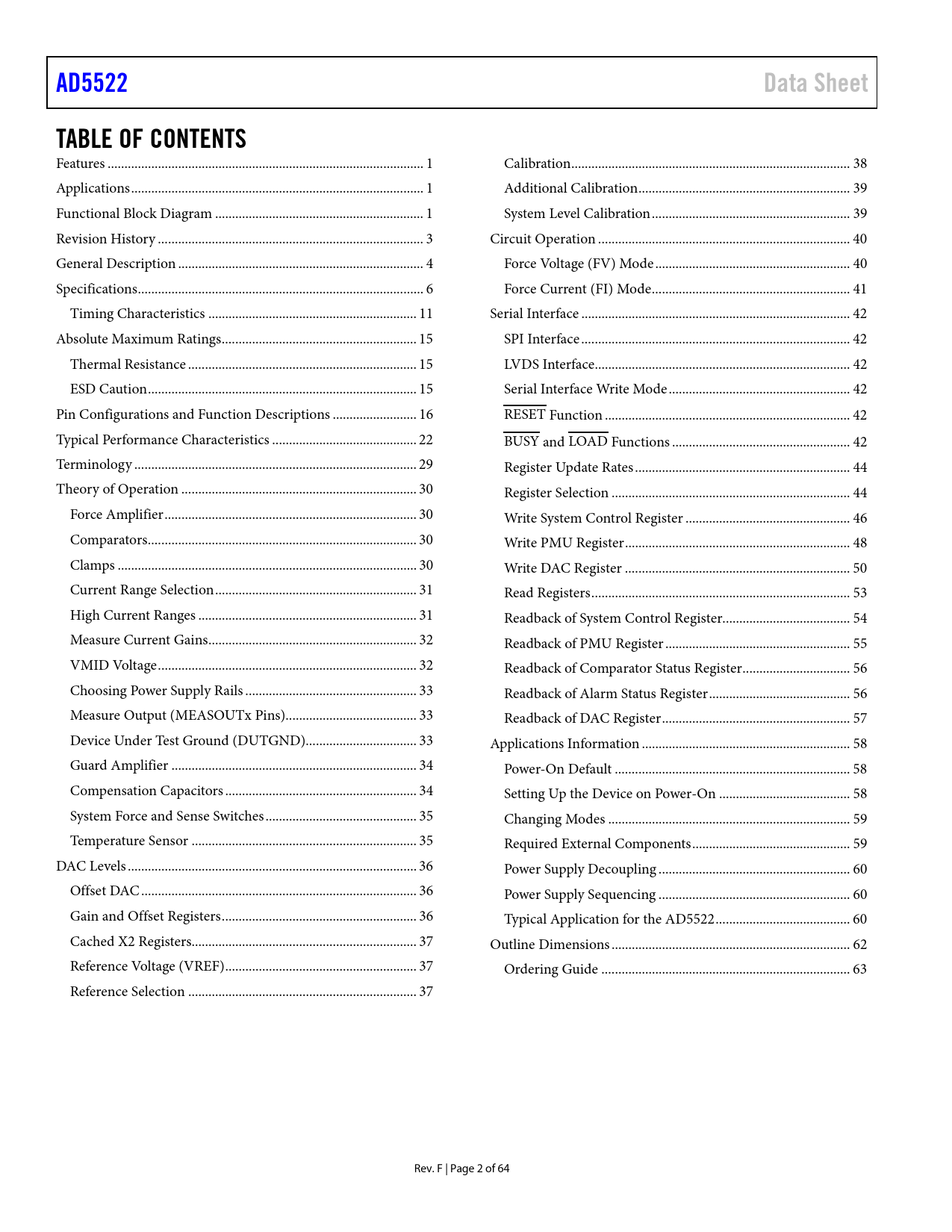 Pages / Page64 / 2 — AD5522. Data Sheet. TABLE OF CONTENTS