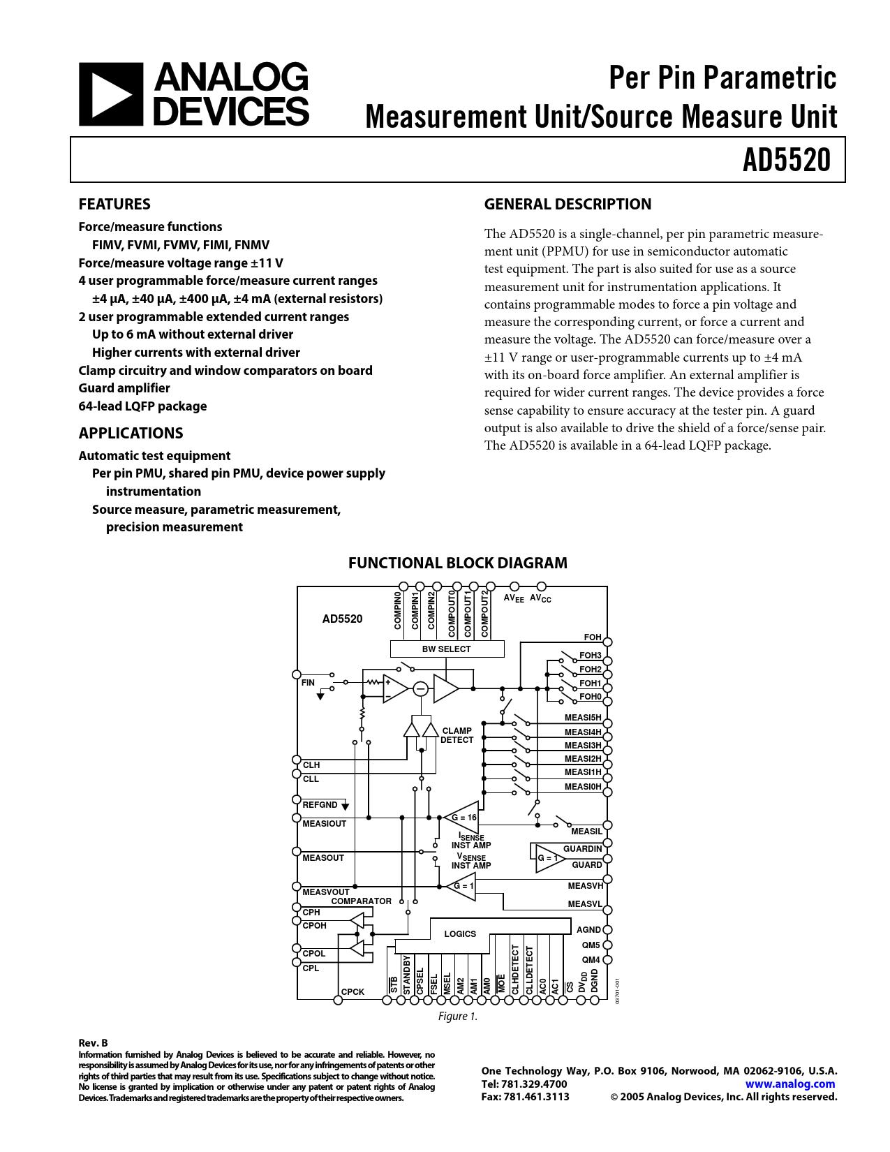 The AD5520 is a single-channel, per pin parametric measure-