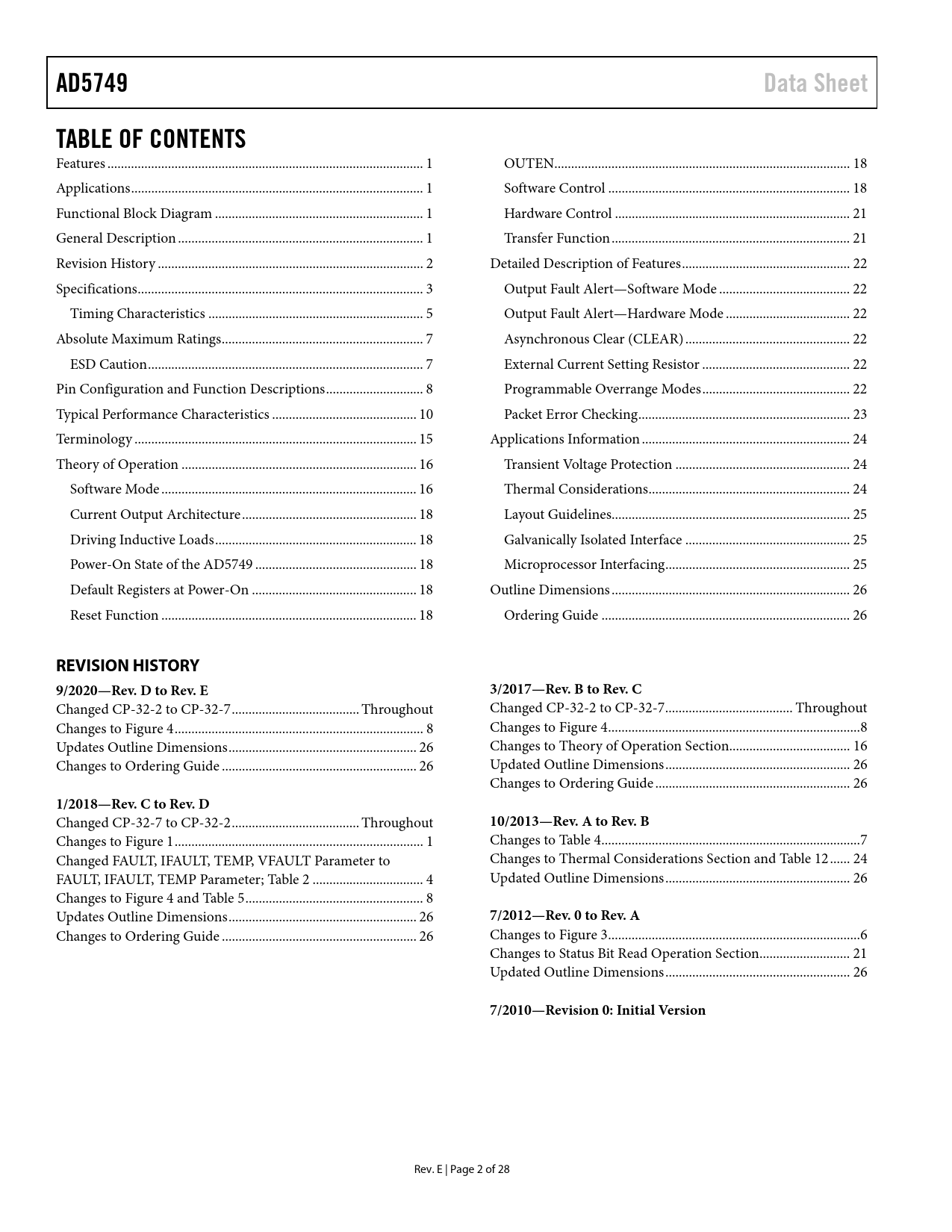 Pages / Page28 / 2 — AD5749. Data Sheet. TABLE OF CONTENTS. REVISION HISTORY. 9/2020—Rev. D to …