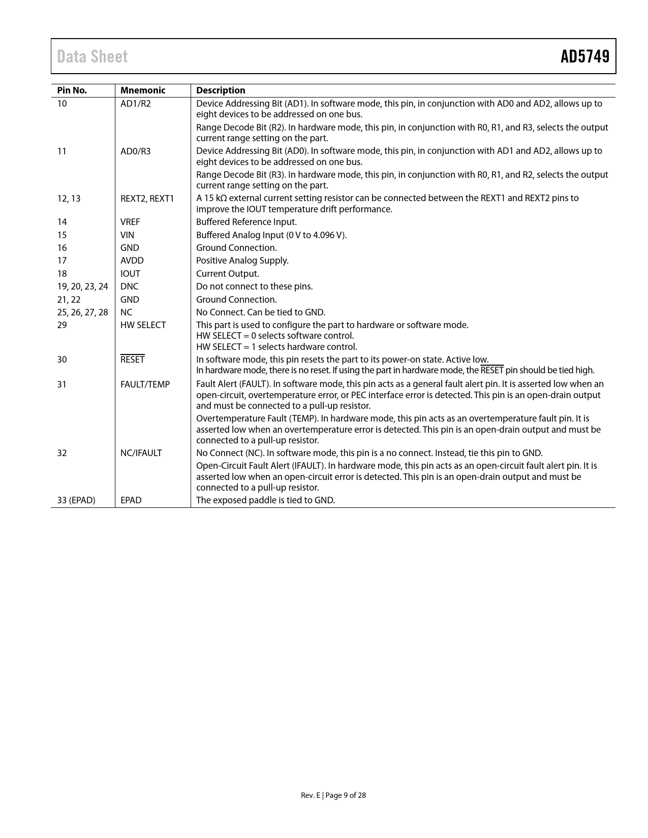 Pages / Page28 / 9 — Data Sheet. AD5749. Pin No. Mnemonic. Description