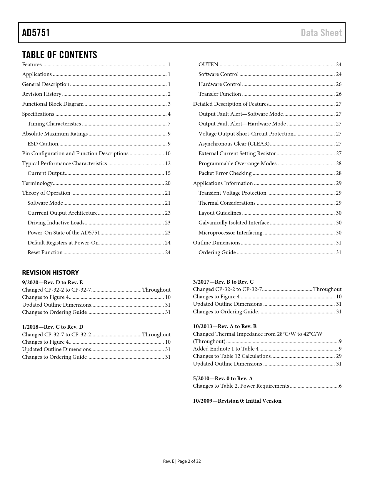 Pages / Page32 / 2 — AD5751. Data Sheet. TABLE OF CONTENTS. REVISION HISTORY. 9/2020—Rev. D to …