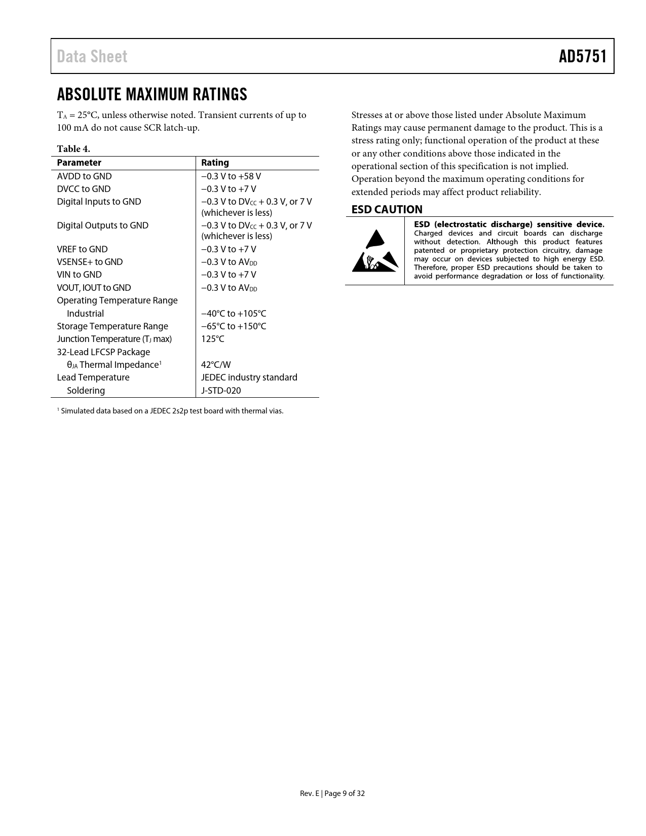 Pages / Page32 / 9 — Data Sheet. AD5751. ABSOLUTE MAXIMUM RATINGS. Table 4. Parameter Rating. …
