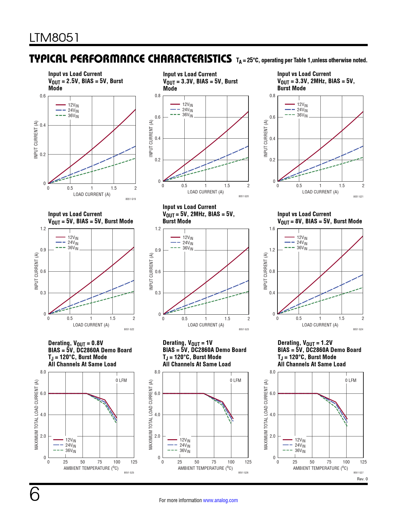 Derating, VOUT Derating, V = 0.8V Derating, V OUT = 0.8V OUT = 1V Derating, V OUT = 1V OUT Derating, V = 1.2V OUT = 1.2V BIAS = 5V, DC2860A Demo Board BIAS = 5V, DC2860A Demo Bd BIAS = 5V, DC2860A Demo Board BIAS = 5V, DC2860A Demo Bd BIAS = 5V, DC2860A Demo Board BIAS = 5V, DC2860A Demo Bd TJ T = 120°C, Burst Mode T JMAX = 120oC, Burst Mode J = 120°C, Burst Mode T JMAX = 120oC, Burst Mode J T = 120°C, Burst Mode JMAX = 120oC, Burst Mode All Channels At Same Load All Channels At Same Load All Channels At Same Load