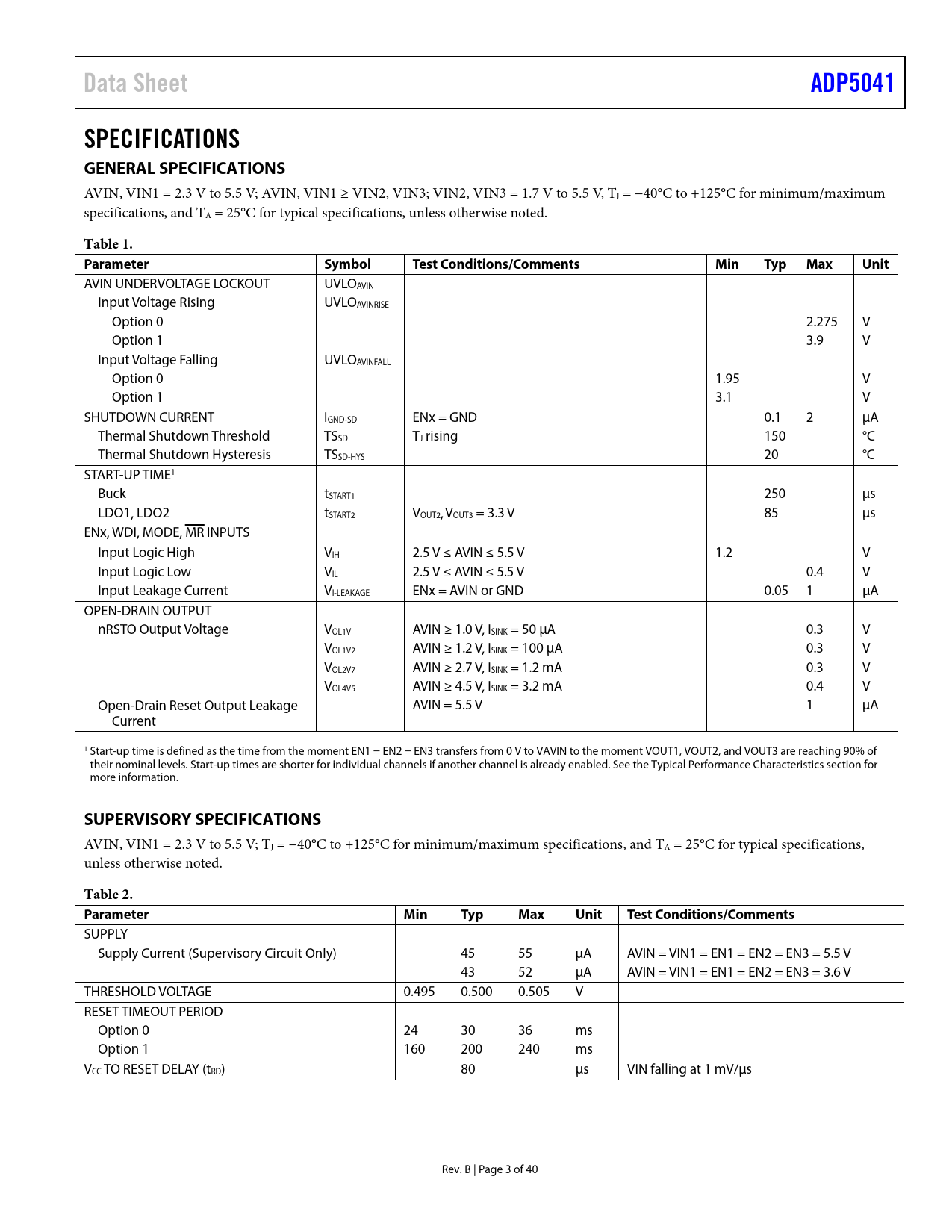 Pages / Page40 / 3 — Data Sheet. ADP5041. SPECIFICATIONS GENERAL SPECIFICATIONS. Table 1. …