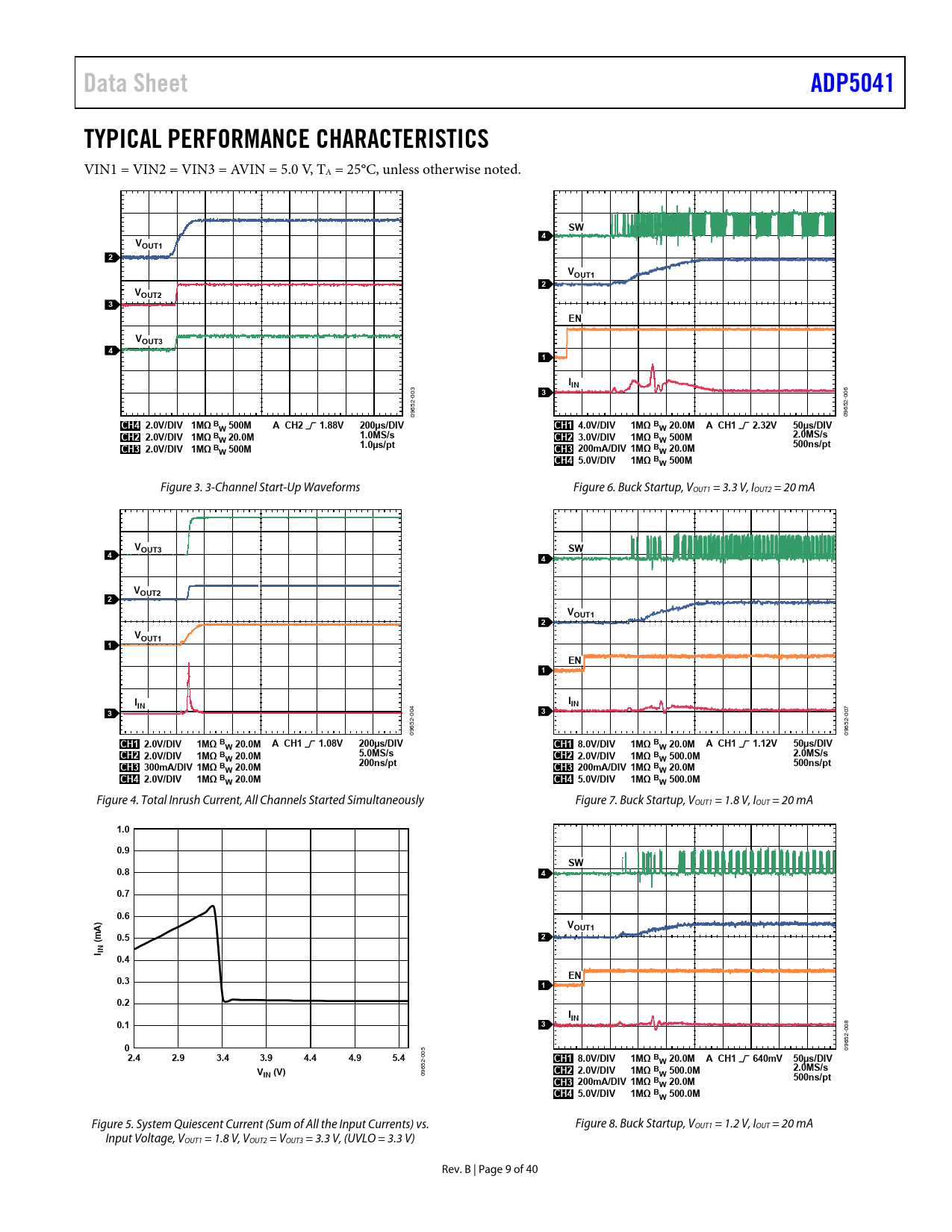 Data Sheet. ADP5041. TYPICAL PERFORMANCE CHARACTERISTICS. VOUT1. VOUT2. VOUT3. IIN. CH4 2.0V/DIV 1MΩ BW 500M. A CH2 1.88V. 200µs/DIV